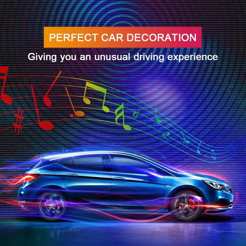 2. Активация музыки: Встроенный микрофон с высокой чувствительностью, спектр с светильник, и цвета автоматически настраиваются на основе окружающего звука, а затем светодиодный светильник s изменит свои цвета после музыкального ритма, повышает безопасность вождения в дневное и ночное время.