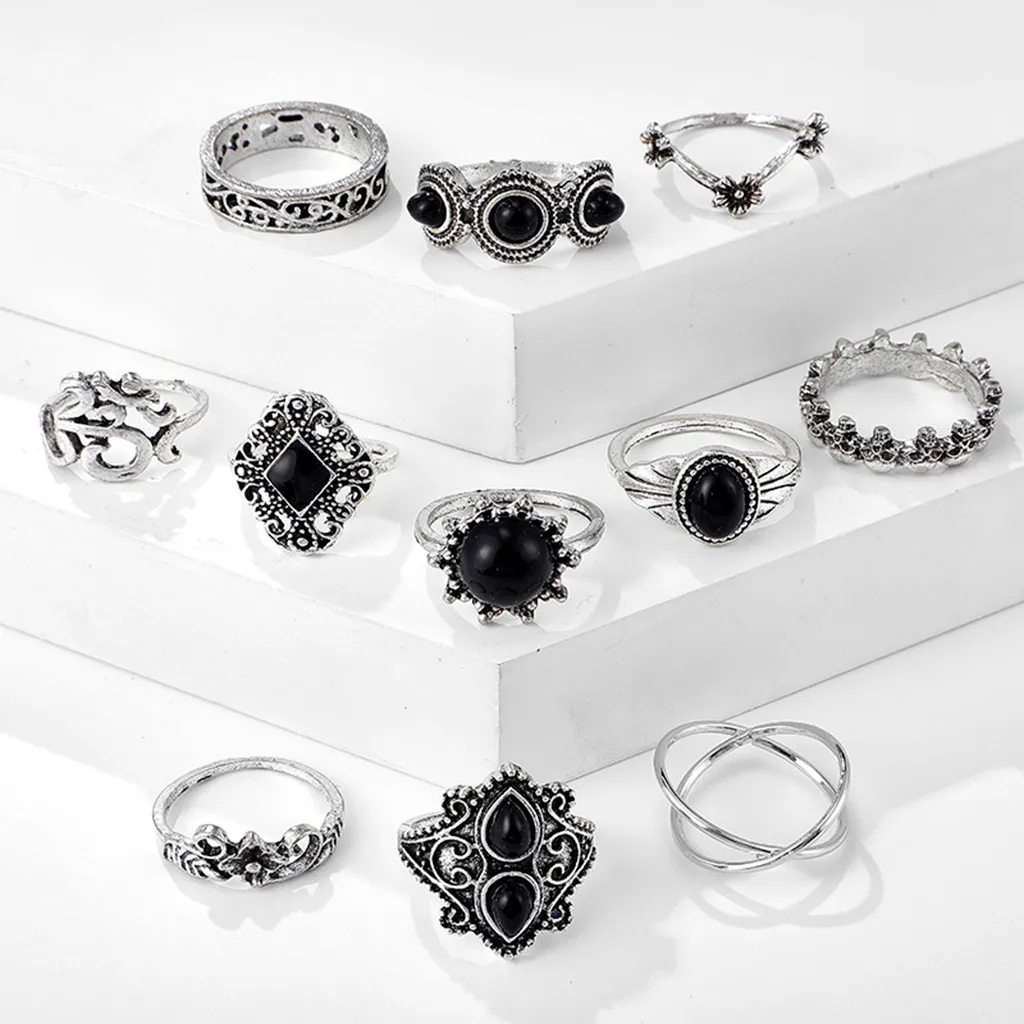 11 шт./компл., женские богемные винтажные серебряные кольца, набор синих колец