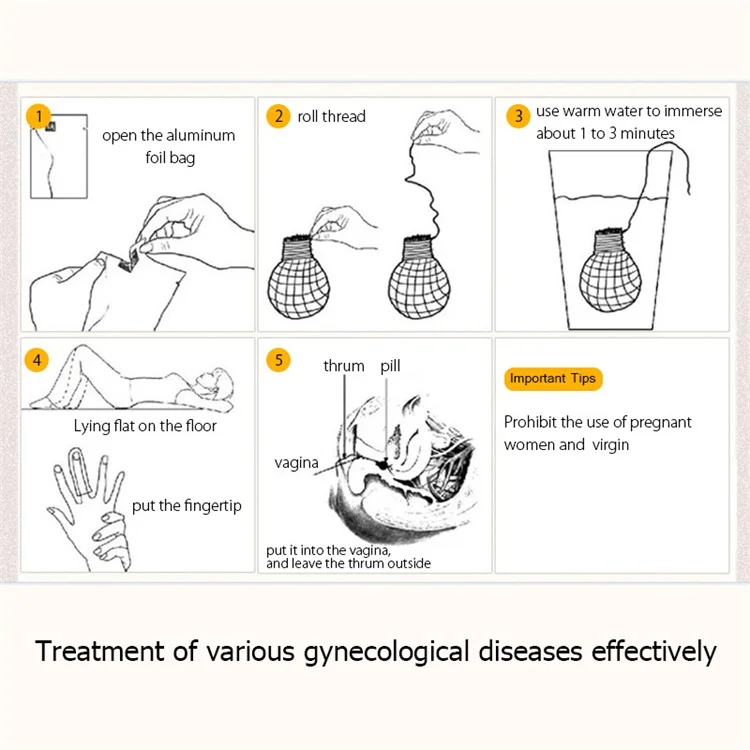 Тампонов Применение: 1. Для Стерилизации В частных частях женщины 2. Полезно для ремонта клеток и улучшения регенерации клеток 3. Бактерии выводятся из организма (в качестве профилактической меры) 4. Восстанавливает функции, замедляет процесс старения и задерживает менопауза 5. Увлажняет и питает влагалище 6. Воспаление матки, шейки матки и эндометрия уменьшается из-за наличия мощных целебных трав 7. Эрозия шейки матки и дисплазия 8. Воспалительные заболевания таза (PID) / Adnexa 9. Половых органов зуда Для обеспечения 1. 100% травяной, без побочных эффектов 2. Питает влагалище и матку 3. Бактерий 4. Уменьшает воспаление, детоксикацию, подтяжки влагалища 5. Одобрено FDA CE ГОСТ Введение Тампон для очистки влагалища предназначен для экстемального использования лекарственных средств для здоровья женщин, таких как детоксикация, стерилизация, зуд, а также стимулирование кровообращения и восстановление женской системы геиталов. Ингредиенты Фруктус Cnidii, Rhizoma Stemonae, Fructus Kochiae, Herba Leonuri, Rhizoma Smilacis glabrie, Rhizoma Angelicae Sinensis, Rhizoma Ligusticum Wallichii и borneol. Тип продукта Стерилизации типа Применение 1. Для Стерилизации В частных частях женщины 2. Полезно для ремонта клеток и улучшения регенерации клеток 3. Бактерии выводятся из организма (в качестве профилактической меры) 4. Восстанавливает функции, замедляет процесс старения и задерживает менопауза 5. Увлажняет и питает влагалище 6. Воспаление матки, шейки матки и эндометрия уменьшается из-за наличия мощных целебных трав 7. Эрозия шейки матки и дисплазия 8. Воспалительные заболевания таза (PID) / Adnexa 9. Половых органов зуда С помощью направления 1. Тщательно Вымойте руки и откройте мешочек, содержащий один тампон 2. Вытяните нитку тампона 3. Вставьте тампон внутрь влагалища длиной около 7 см 4. Вы должны удалить тампон через 3 дня 5. Одна таблетка может использоваться в течение 3-5 дней 6. Ополосните (влагалище) 7. Вставьте следующий тампон через 24 часа после удаления первого 8. Используется для здравоохранения для промежности Предупреждение 1. Не используйте тампоны препарат за 7 дней до начала менструации и подождите не менее 3 дней после последнего дня менструации перед использованием тампона 2. Не используйте тампоны во время менструации, или если вы беременны, или если вы девственница, Избегайте использования тампонов, если у вас аллергия на любые ингредиенты тампона (см. Список ингредиентов выше) Упаковка 1) 1 зерно в 1 алюминиевой фольге. 2) Индивидуальная маркировка и упаковка доступны по договоренности. Коробка для хранения Храните его в прохладном и сухом месте и избегайте прямого солнечного света.