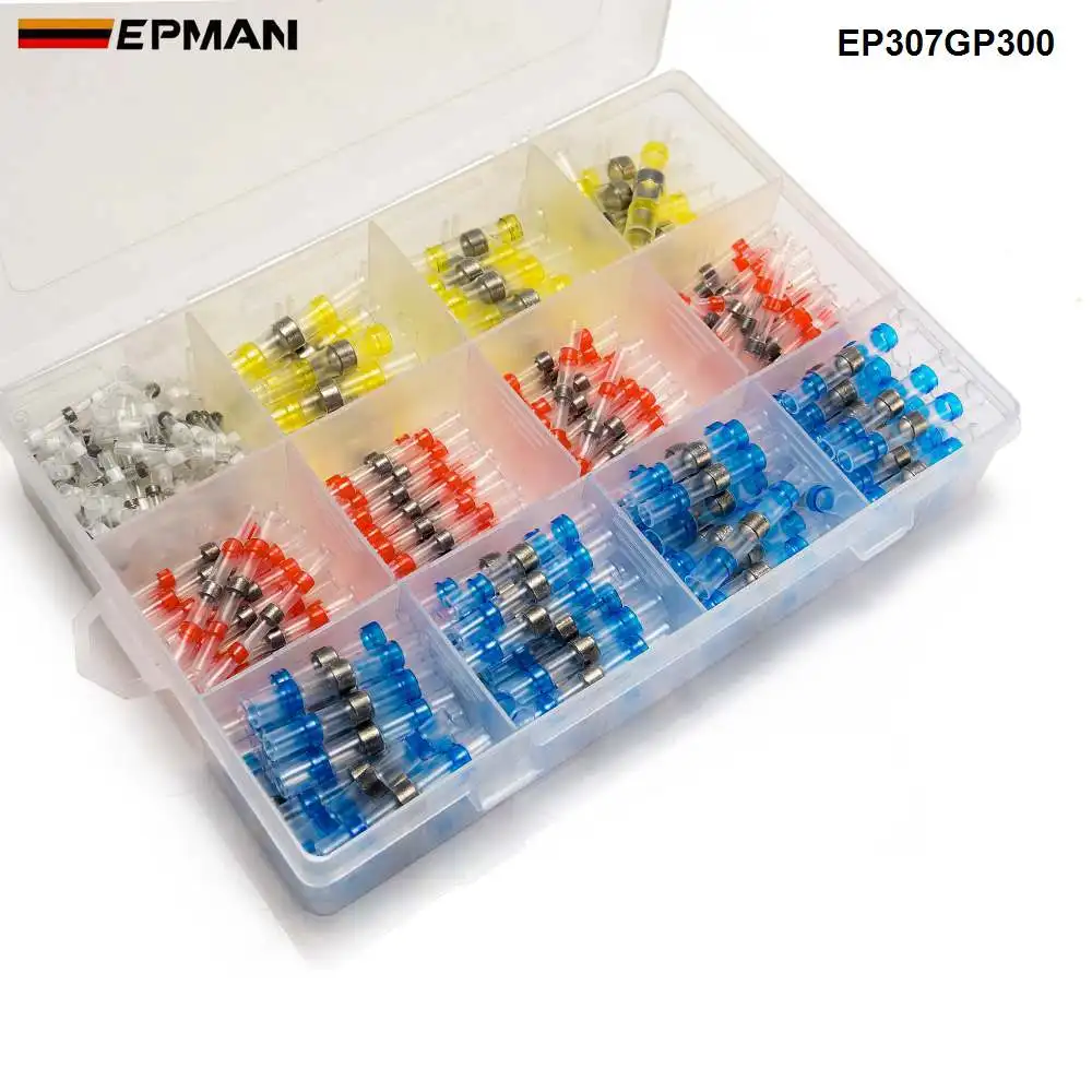 EPMAN 300Pcs Solder Seal Sleeve Heat Shrink Butt Waterproof 26-10 AWG Wire Splice Connector EP307GP300
