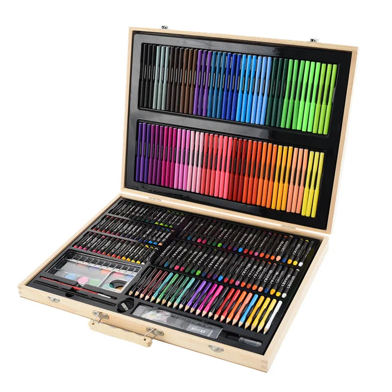 [Наименование]: 251 деревянная коробка акварельных ручек [Цвет]: Изысканная Подарочная коробка и портативный светильник из дерева коричневого цвета [Качество]: передовые материалы [Характеристики]: 251 шт. для малышей + милые узоры-хороший подарок для родителей и друзей. Вес и длина: 2,4 кг Длина: 49 см высота: 37 см Толщина: 6 см [Внутренняя структура]: этот раздел содержит 78 акварельных ручек, 48 мелков, 45 масляных пастелей, 30 скрепок, 24 цветных свинца с коротким стержнем, 18 порошковых красок, 1 линейка, 1 карандаш, 1 ластик, 1 точилка для карандашей, 1 кисть для краски, 1 лоток для краски, 1 клей. [Примечание]: крышка должна быть плотно закрыта, когда она не используется, чтобы продлить срок службы. Этот продукт подходит для детей старше 3 лет и соответствует стандарту проверки ASTMD4236. Этот продукт не только имеет тонкое мастерство, но и имеет красивый внешний вид, который удобно носить с собой. Дизайн изделия является новым и уникальным. Как канцелярская Подарочная коробка для детей, это практично, красиво и благородно, что может полностью показать вашу заботу и любовь, а также может показать вашу уникальную художественную эстетику! Детям, которые собирают подарки, понравится!