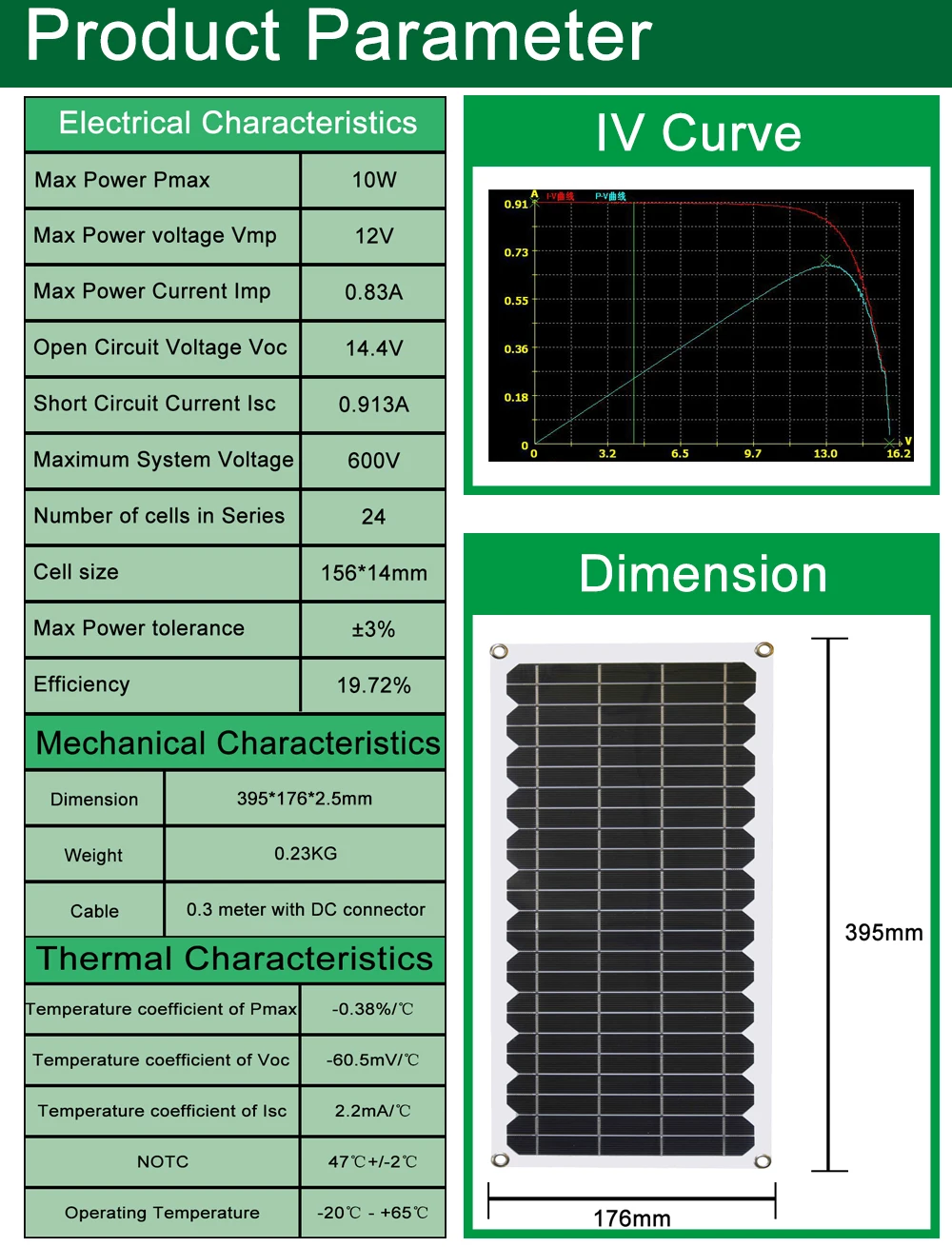 Тщательно протестированная панель мощностью 10 Вт предназначена для защиты от экстремальных ветровых и снежных нагрузок Легко устанавливается с помощью клея, клея, винта, а также втулки на углу для фиксации винтов и крепления. Более компактный размер генерирует 30% высокой мощности, чем рынок солнечной панели, устойчивый идеальный генерировать мощность