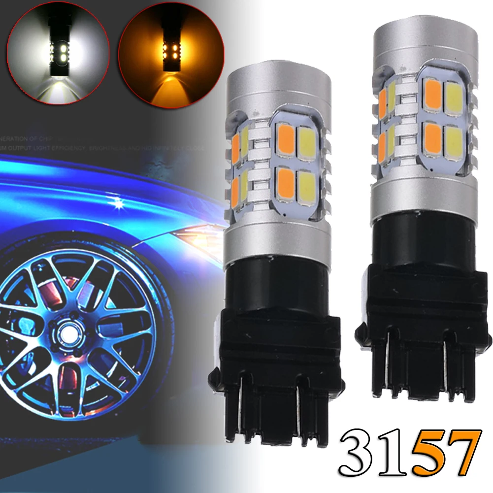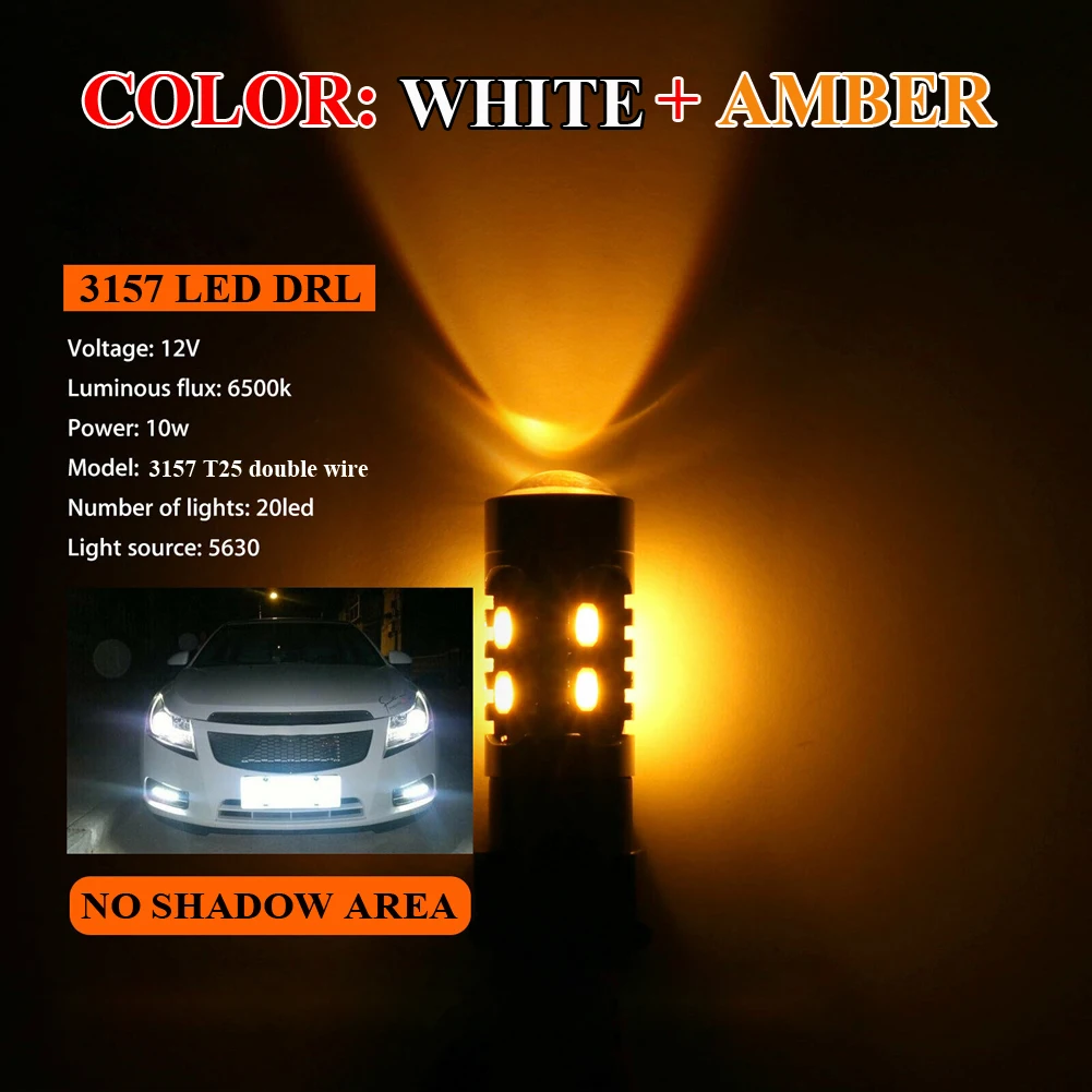 * Яркий: 3157 светодиодный DRL Белый/Янтарный указатель поворота лампы намного ярче, чем 5050 SMD светодиодный.