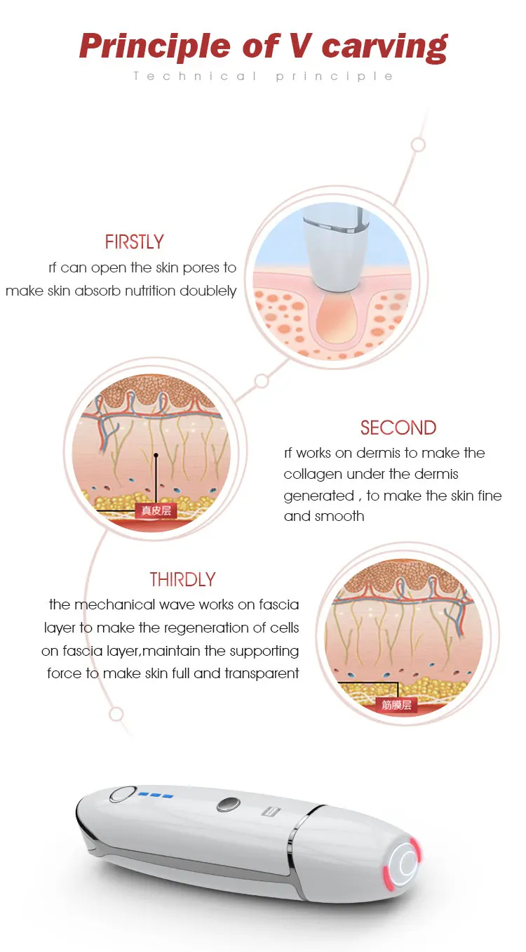 Что такое резьба по линии радара? Радар V резьба-это ручка HIFU для лифтинга лица, удаления морщин, затяжки кожи, формы лица, формы шеи... Это машина красоты для домашнего использования, новый дизайн, основанный на технологии механических волн и RF-принцип. Он имеет эффект лица, продукт свинцово-кислотный, стимулирующий регенерацию фасциевого слоя и коллагена. Описание продукта: Это Тип Мини V-max лицевой подъемной машины. Это машина красоты для домашнего использования, новый дизайн, основанный на технологии механических волн и RF-принцип. Он имеет эффект лица, продукт свинцово-кислотный, стимулирующий регенерацию фасциевого слоя и коллагена. Инструментальный преимущества: 1. Глубина: напрямую работает на SMAS 2. Температура: неинвазивные стимулирует восстановление-поколение collegan. 3.Hifu: сфокусированный ультразвук работает только в области лечения, не причиняет вреда окружающим. 4. Без времени восстановления: без вреда для повседневной жизни. 5. Не нужно делать хирургию. 6. Удобно при занятиях: энергия пропускает кожу, не причиняет вреда. Управление руководство Операция на шее: мы рекомендуем начать с линии шеи на кнопках, от ключицы вдоль шеи до ягодиц, от двойного подбородка до горла. Области горла запрещены для использования, затем от двойного подбородка до лимфы вокруг, не забывайте, что область горла запрещена; Пользователь может 3-4 раза выполнять такие действия, как свободная кожа. Операция по лицу: интенсивность начинается с самой низкой, от ягодиц до скул, затем от рта до ушей, используя подъемные манипуляции, последний шаг со стороны носа вдоль яблока, подтяжка мышц до висков. Пользователь может 3-4 раза выполнять такие действия, как свободная кожа. Операция вокруг глаз: интенсивность начинается с самой низкой, от Подъема скулы до храма вокруг, затем от угла вокруг глаз, до линии вокруг волос, не забывайте, что верхние века и орбитальные кости запрещены. Пользователь может 3-4 раза выполнять такие действия, как свободная кожа. Операция на лбу: интенсивность начинается с самой низкой, от подъема бровей до линии вокруг, подтяжки бровей посередине до висков, подтяжки бровей до линии вокруг, от кнопки вверх, от офриона до висячих точек, мы рекомендуем брови не делать этого; Пользователь может 3-4 раза выполнять такие действия, как свободная кожа. Примите к сведению, что Во время работы картридж не может оставаться в одном месте, делая повторяющуюся работу, двигаясь с постоянной скоростью с самого начала, мы рекомендуем регулировать интенсивность с самой низкой, затем, в зависимости от области обработки, для регулировки интенсивности, настраивайте на максимальный толерант клиентов, во время работы, Вы будете чувствовать себя горячим, в какой-то чувствительной области будет ощущаться небольшое напряжение, после операции, если вы почувствуете боль и отечность, все в нормальной ситуации. Вывод: Для нормальной кожи, в первые 5 раз мы рекомендуем три дня один раз, после 5 раз работы, 5 дней один раз. Для чувствительной кожи, в первые 5 раз, мы рекомендуем 5-7 дней один раз, после 5 раз работы, 10-15 дней один раз, 8-10 раз один лечение. Вы можете сконструировать время лечения в соответствии с личной свободностью кожи. После того, как операция может иметь разную степень детоксикации, метаболизм: прыщи, акне, колючие, Рвущие, зудящие, легкие отекы, болезненные, вс