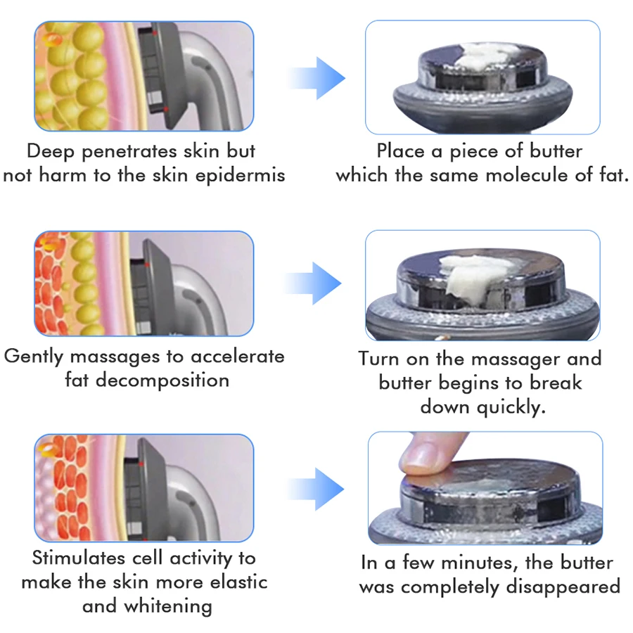 Особенности: Эффективный ультразвуковой массажер для лица и тела. EMS аппарат для похудения и тонизирования кожи и тела. Инфракрасное устройство для термической терапии кожи. Улучшает текстуру кожи, против морщин, помогает бороться с жировыми участками, подтягивает. Быстро и эффективно уменьшает и избавляет от тяжелых хронических болей в спине, других видов боли в теле. Регулируйте внутреннюю секрецию и ускоряйте употребление жира, воплощайте мечты о похудении. Мини и стильный внешний вид, удобно носить с собой, прост в использовании. Для лица и тела. Параметры: 1. Дальний инфракрасный свет имеет следующие функции: Связка углеродного волокна, окружающая зонд, может генерировать Дальний инфракрасный луч с длиной волны 8-12 мкм. Он может проникать в глубину кожи, увеличивать силу кожи, активировать клетки и ускорять обмен веществ. 2. Ультразвук имеет три основные функции: Он может изменить емкость и движение каждой клетки с точной функцией массажа, которая называется массажем клеток. Он может стимулировать и регулировать цитомембрану, увеличить проницаемость эпидермиса, его тепловых, физические и химические эффекты могут повысить температуру в глубокой коже на 0,5-1 °C, повышает кожу, чтобы впитать эссенции, ускоряет метаболизм и усиливает регенеративный ход ткани. Ультразвуковой может также разложить отходы окружающего жира, потреблять энергию, восстанавливать лимфатические и капиллярные сосуды с функциями похудения и скульптуры фигуры. 3. Микро-ток: Массаж с микро-током, стимулирует мышцы пассивным движением под током. Мышечное движение потребляет жир, сахар и углеводы окружающей ткани. При нормальном движении мышцы могут потреблять 60-70 джоулей энергии в секунду, но при высокочастотном движении мышцы могут потреблять 3000-4000 джоулей энергии в секунду. Посылка 1 x Ультразвуковой Массажер 1 МГц 1 x Мощность адаптер Провод-1 шт. 4 x Pad Руководство пользователя (1 шт.)