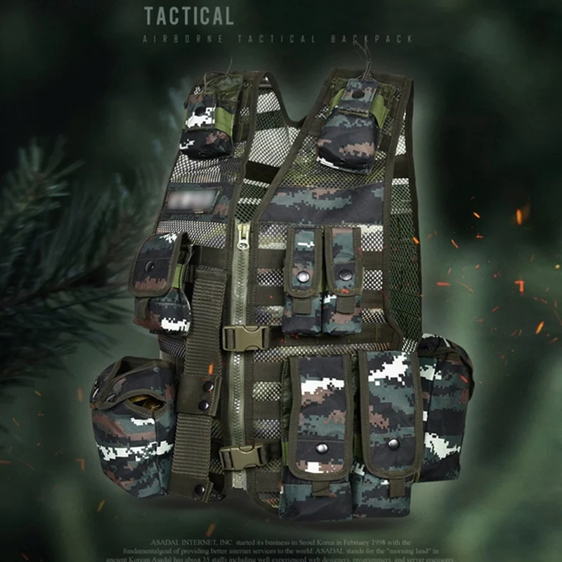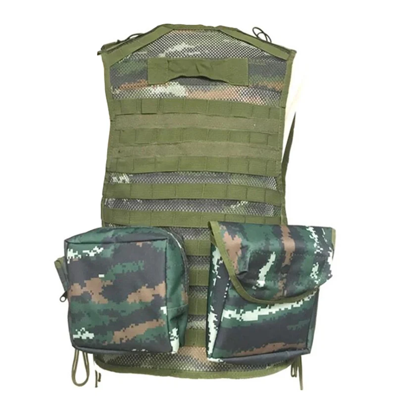 Название продукта: Камуфляжный Многофункциональный тактический жилет Материал: высококачественный нейлон Цвет: камуфляж Особенности: несколько пакетов аксессуаров Размер: 62 см * 45 см Аксессуары продукта: основной жилет, шаг QD коробка мешок, SQD мешок, walkie talkie мешок, walkie talkie мешок, маска мешок, разное мешок, бутылка воды мешок, и т. Д.
