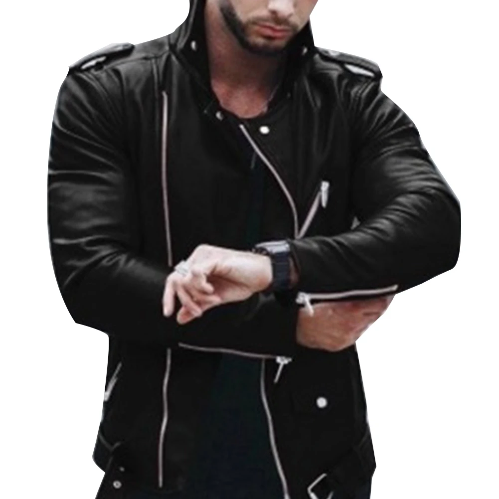 Мужские кожаные куртки, осенние куртки с длинным рукавом и воротником-стойкой, зимние куртки на молнии, черные, винно-красные пальто из искусственной кожи, куртка мужская