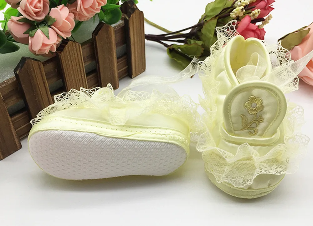 Cute Baby Girls Non-Slip Newborn Infant Baby Toddler Lace Frilly Flower Shoes