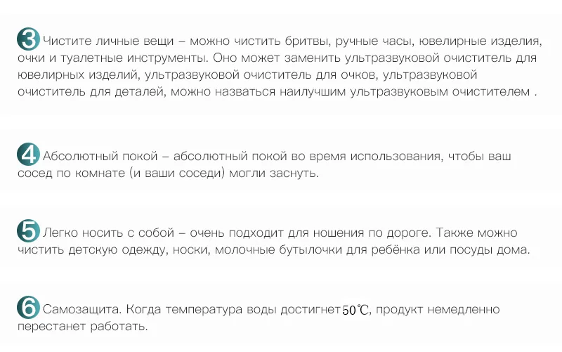 1. When the temperature of the water reaches 50°, the product will stop working immediately and display "---", It can continue to be used normally after 15 minutes. 2. The vibration part must be immersed in water before connectting power. Do not power on without being immersed in water. 3. Please not disassemble the ultrasonic cleaner without authorization, so as not to affect the normal operation of the ultrasonic machine. 4. The amount of noise depends on different containers. For example, when the cleaner used in a glass container, the noise is greater than used in a plastic container. 5. Please do not put the control part in water.It's not waterproof. 6. Please use the ordinary temperature water. The warm water and the hot water are prohibited! 7. Please do not put 2 or more than 2 ultrasonic cleaners together to work! ! ! Note: There are 2 versions, 110V works for 100V-168V, 220V works for 200V-268V. Please choose the correct version.
