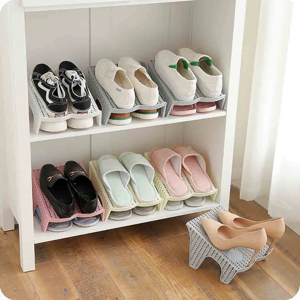 Оптимизация хранения: двойная емкость органайзера для обувной стойки, лучшее решение для экономии пространства для вашей обуви в стойке для обуви, шкафу, шкафу и шкафу. Сделайте ваш многолюдный шкаф организованным, удерживайте более чем в два раза больше обуви, чем раньше