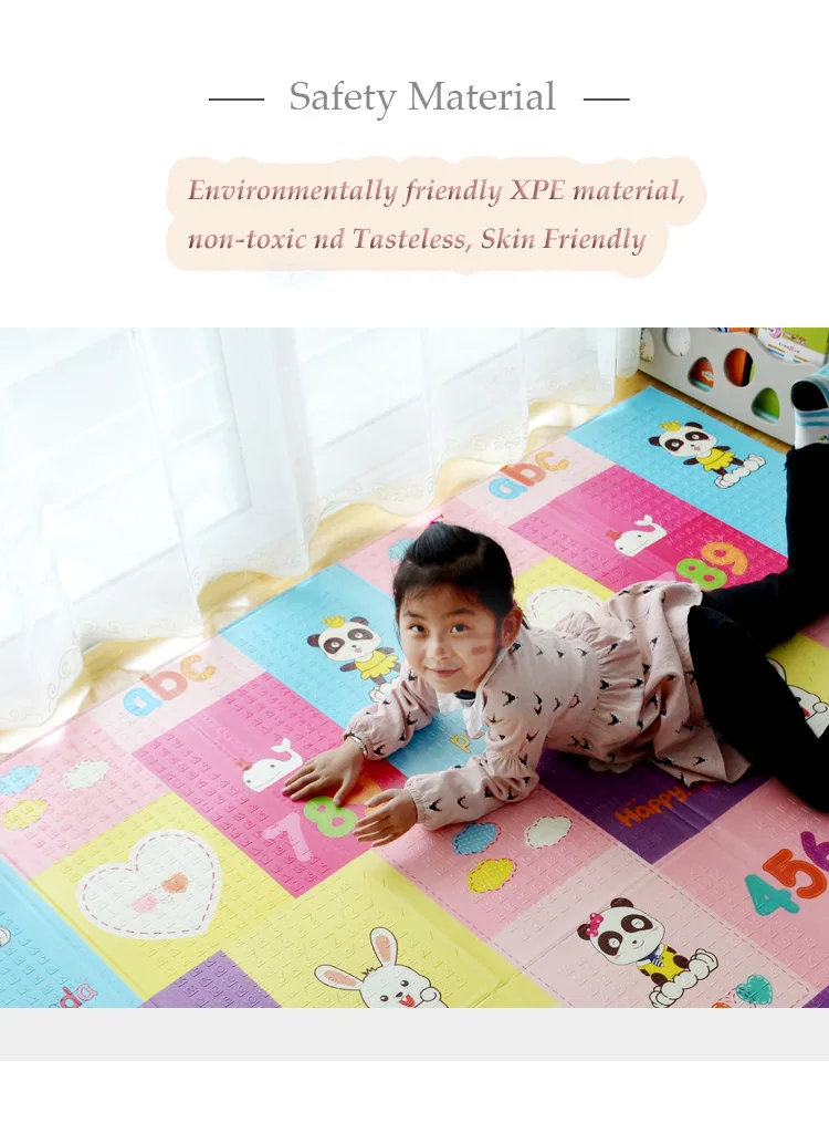 Преимущества: Изготовлен из материала XPE, без свинца, хрома, BPA и фталатов, безвреден для ребенка. Поверхность на 100% водостойкая и Легко протирается неизбежными брызгами сухой тканью. Никогда не беспокойтесь о пятнах или проблемах с уборкой. Двойной L текстурированный дизайн Противоскользящий помогает уменьшить скольжение и скольжение. Поскольку коврик мягкий, его легко очистить и оторвать, когда ребенок копает коврик, пожалуйста, используйте его под наблюдением родителей.