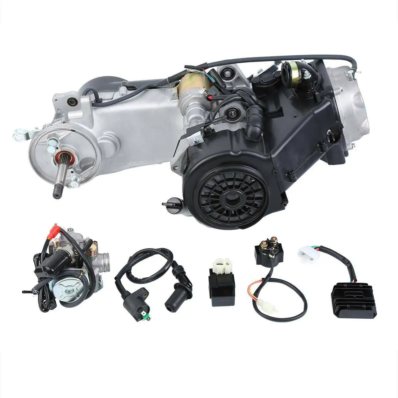 Этот полный двигатель включает в себя карбюратор, CDI, стартовый соленоид, катушку, используемую в широком спектре применений, включая полноразмерные уличные скутеры, вездеходы (вездеходы), велосипеды грязи, И go karts, фактический объем двигателя 125cc, Но совместим с 125cc и 150cc Размер двигателя скутеры и транспортные средства.