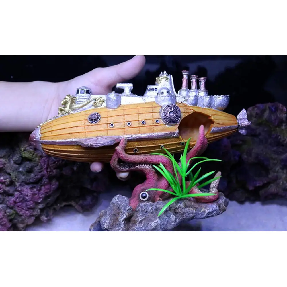 Аквариумный орнамент дирижабль линкор подводная лодка форма приют дом аквариум пещера декор смола орнамент ландшафтное украшение