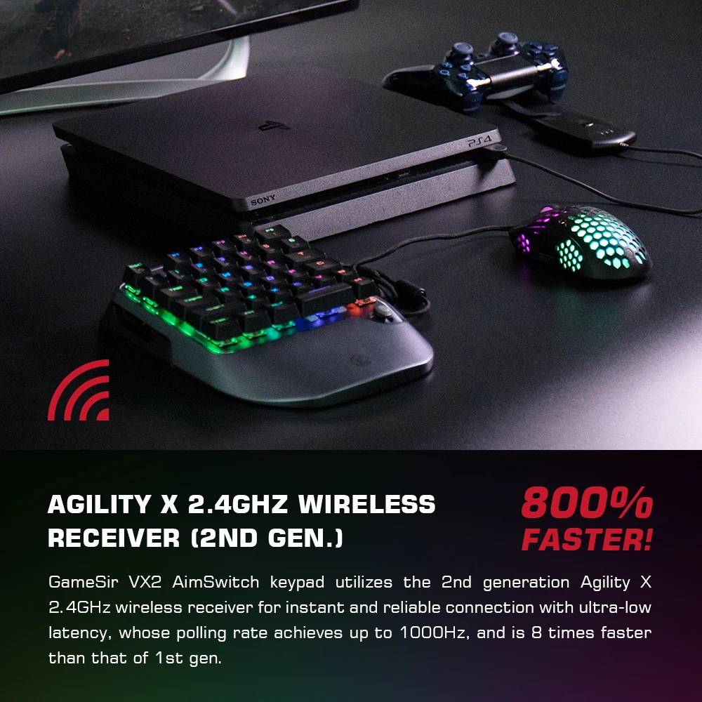 GameSir разработала надежное беспроводное решение для решения основных проблем задержки, стабильности и подключения. Конечный результат ловкость X 2,4 ГГц Беспроводная технология, профи-класс беспроводное решение. GameSir VX2 AimSwitch использует 2nd generation ловкость X 2,4 ГГц беспроводной адаптер для мгновенное беспроводное соединение с ультра низкой задержкой. Позвольте вам избавиться от проводов и свободно играть в игры.