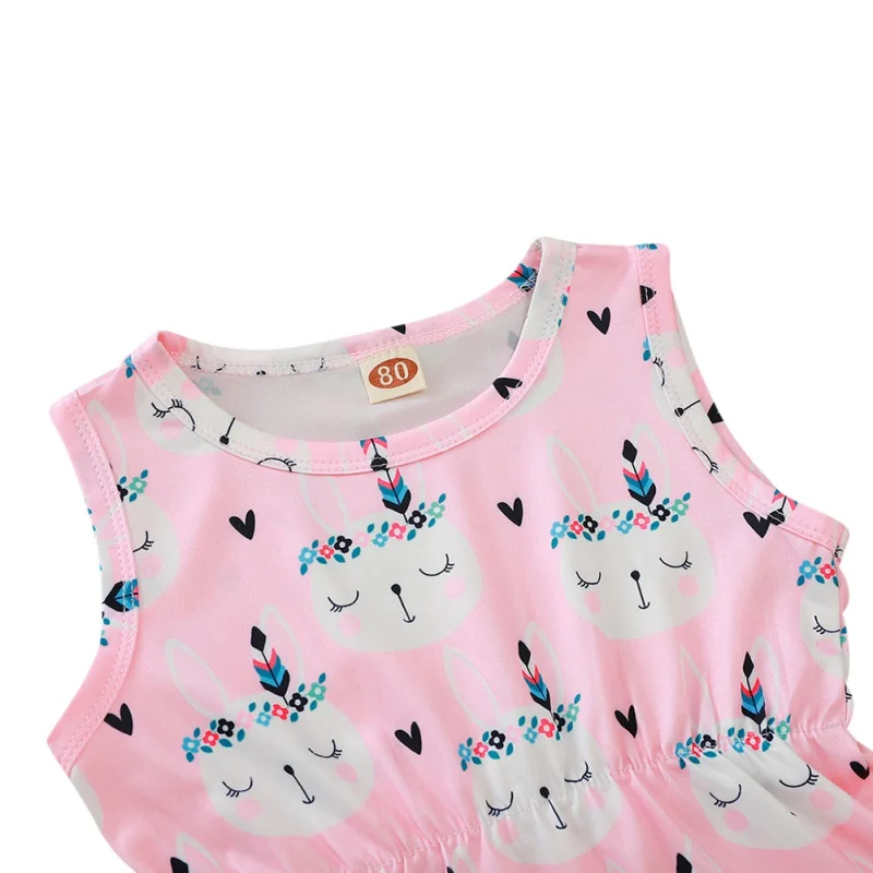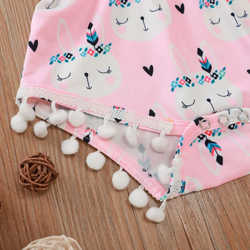 Одежда для малышей; Повязка на голову для девочек; Комплект из 2 предметов для маленьких девочек; Пасхальный комбинезон с принтом кролика без рукавов и бахромой; Комбинезон