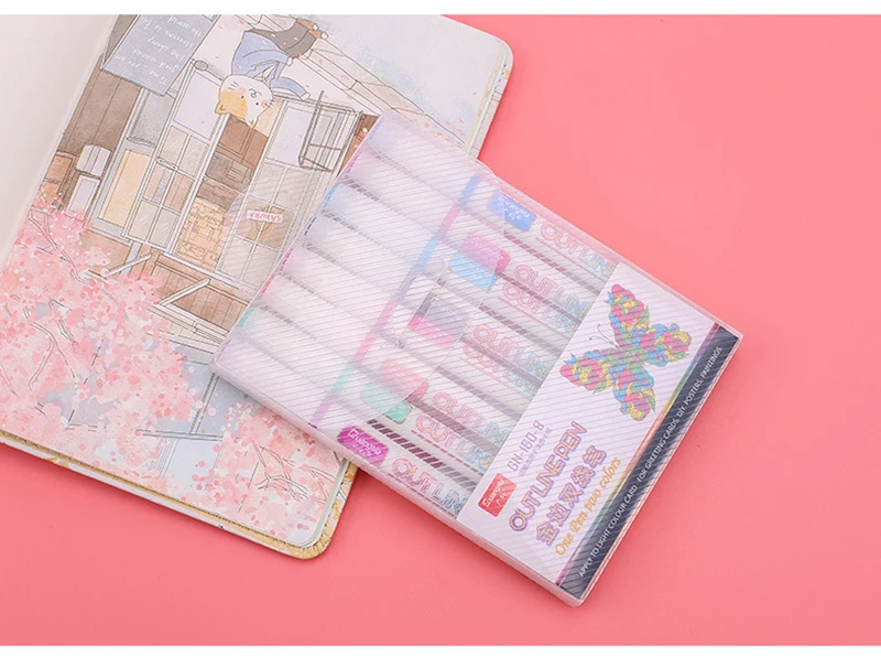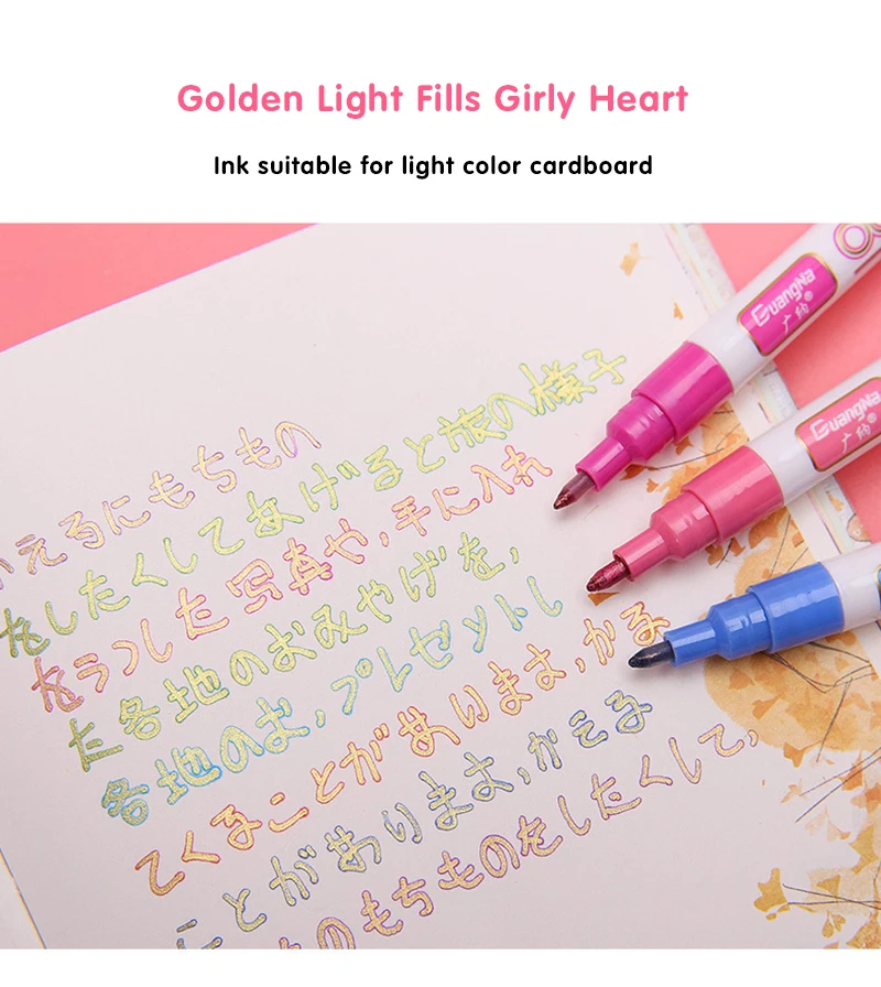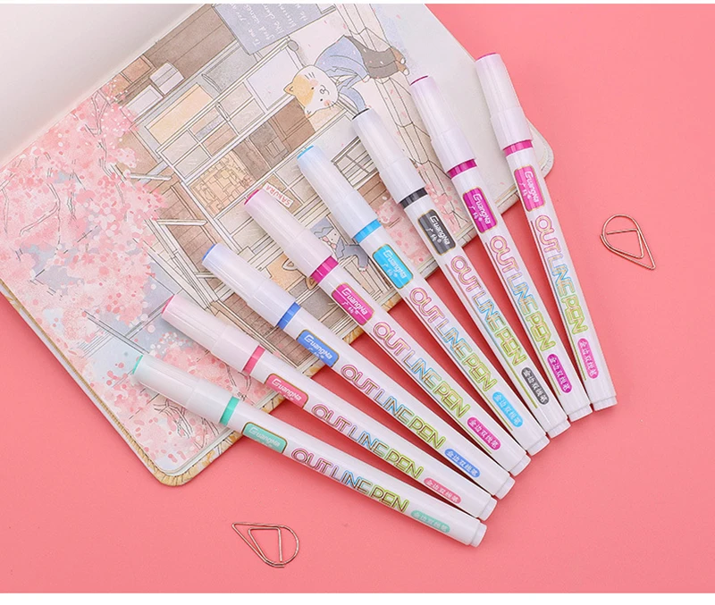 8 видов цветов Пном двойная линия контурная ручка Блестящий цветной флуоресцентный маркер металлический цветной почерк ручка цветной маркер DIY канцелярские принадлежности