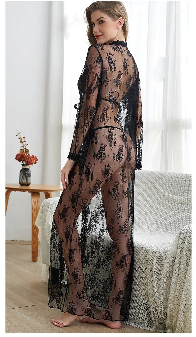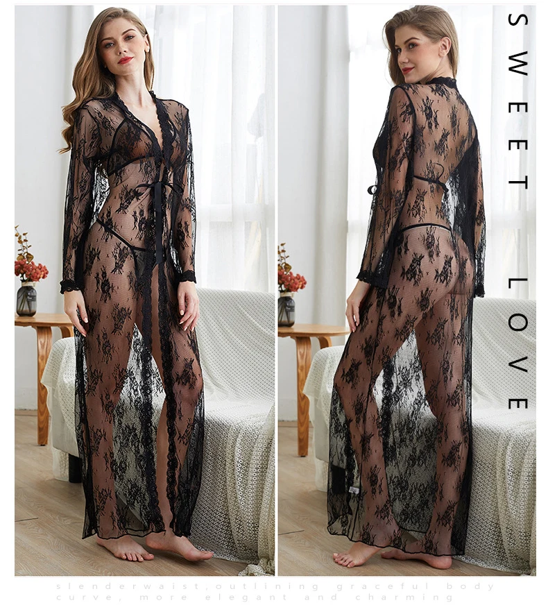 Комплект одежды включает: бюстгальтер + стринги + халат