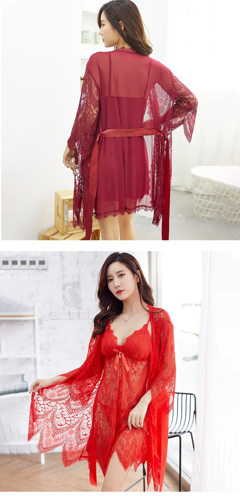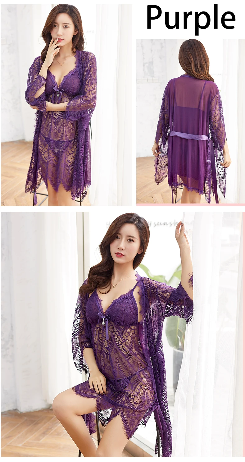Комплект ночного белья включает: Ночное платье + халат + стринги