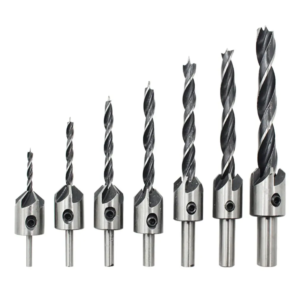 Преимущества: устройство для снятия фасок является пятью лезвиями. Он может быстрее разряжать древесную стружку во время использования, и просверлить ровную и плоскую зенковку за один раз, чтобы вставить винтовую крышку в поверхность заготовки. Подходит для дрелей, ручных дрелей и других инструментов.