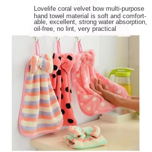Коралловый бархат подвеска-бант полотенце, сильное поглощение воды, без удаления волос, кухонное полотенце