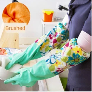 Кухонные домашние очищающие утолщенные латексные перчатки для мытья посуды водонепроницаемые домашние расширенные плюшевые перчатки