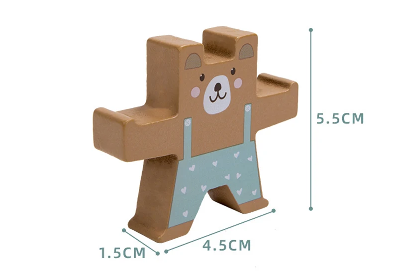 Сбалансируйте строительные блоки медведя, используя высококачественную древесину, безопасную краску на водной основе, подходящую для игры ребенка. Он может тренировать способность вашего ребенка, баланс и концентрацию. Цветовое познание, развитие воображения, создание большего количества форм, откройте для себя больше удовольствия, взаимодействие родителей и детей, раннее образование, детство не является монотонным.