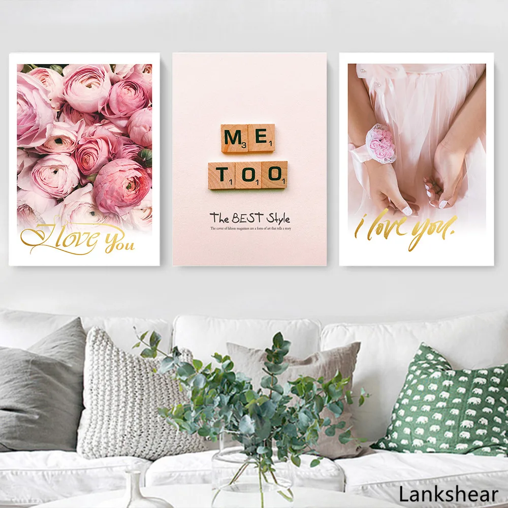 Nordic Lotus Pink Flowers Wall Art Canvas Paintings Wall Posters Printed Picture...