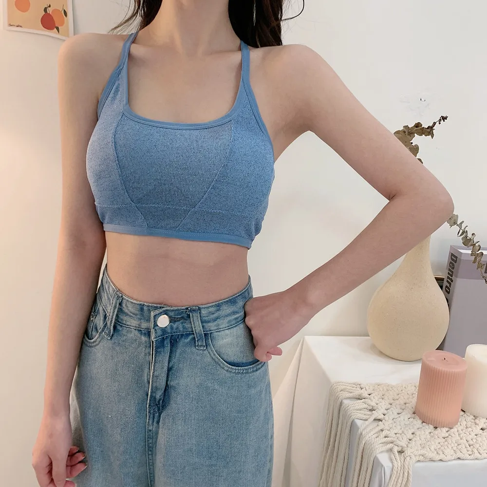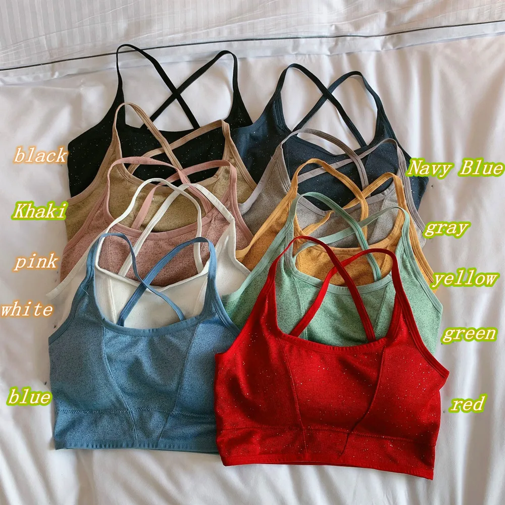 Девушки бесшовный укороченный дышащий спортивный бюстгальтер, модный топ, Блестящие модные фитнес для подбитый ватой спортивный Спортивный бюстгальтер для девочек переходного возраста от бег гимнастический, спортивный, для йоги жилет