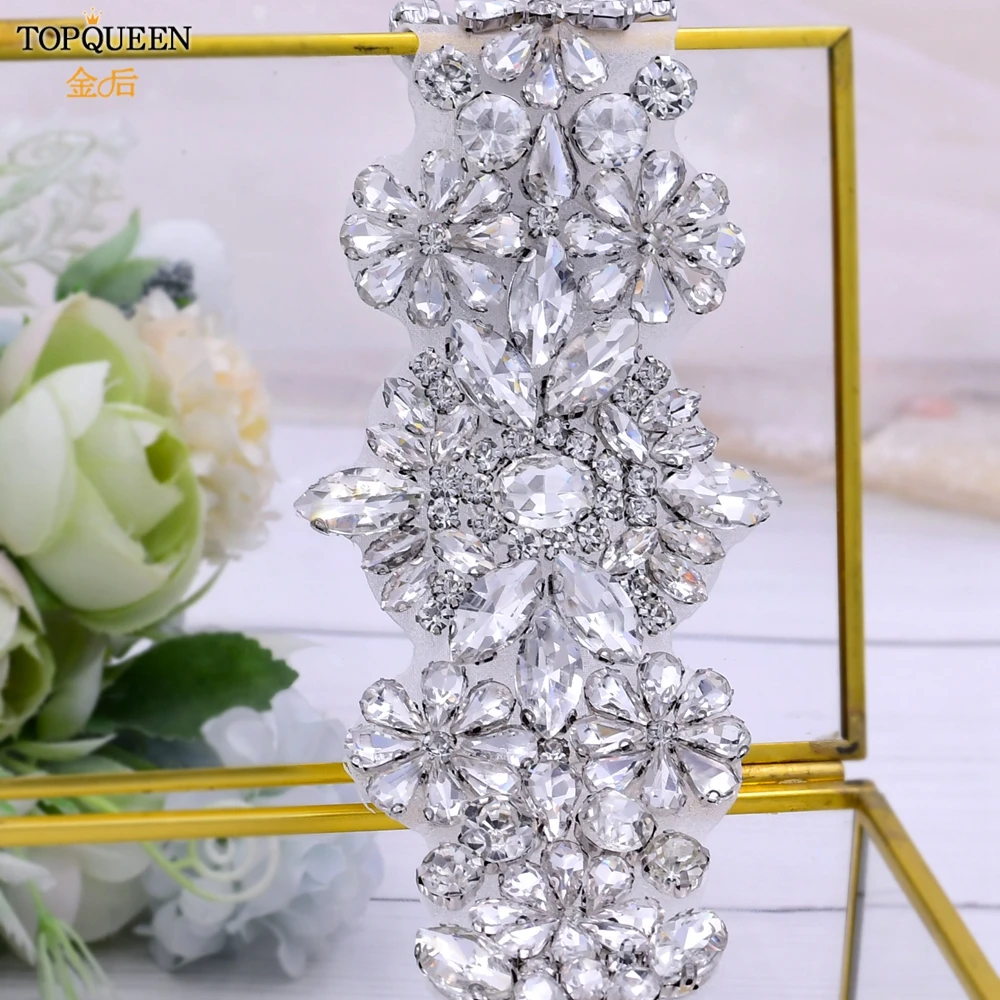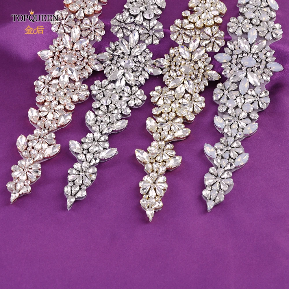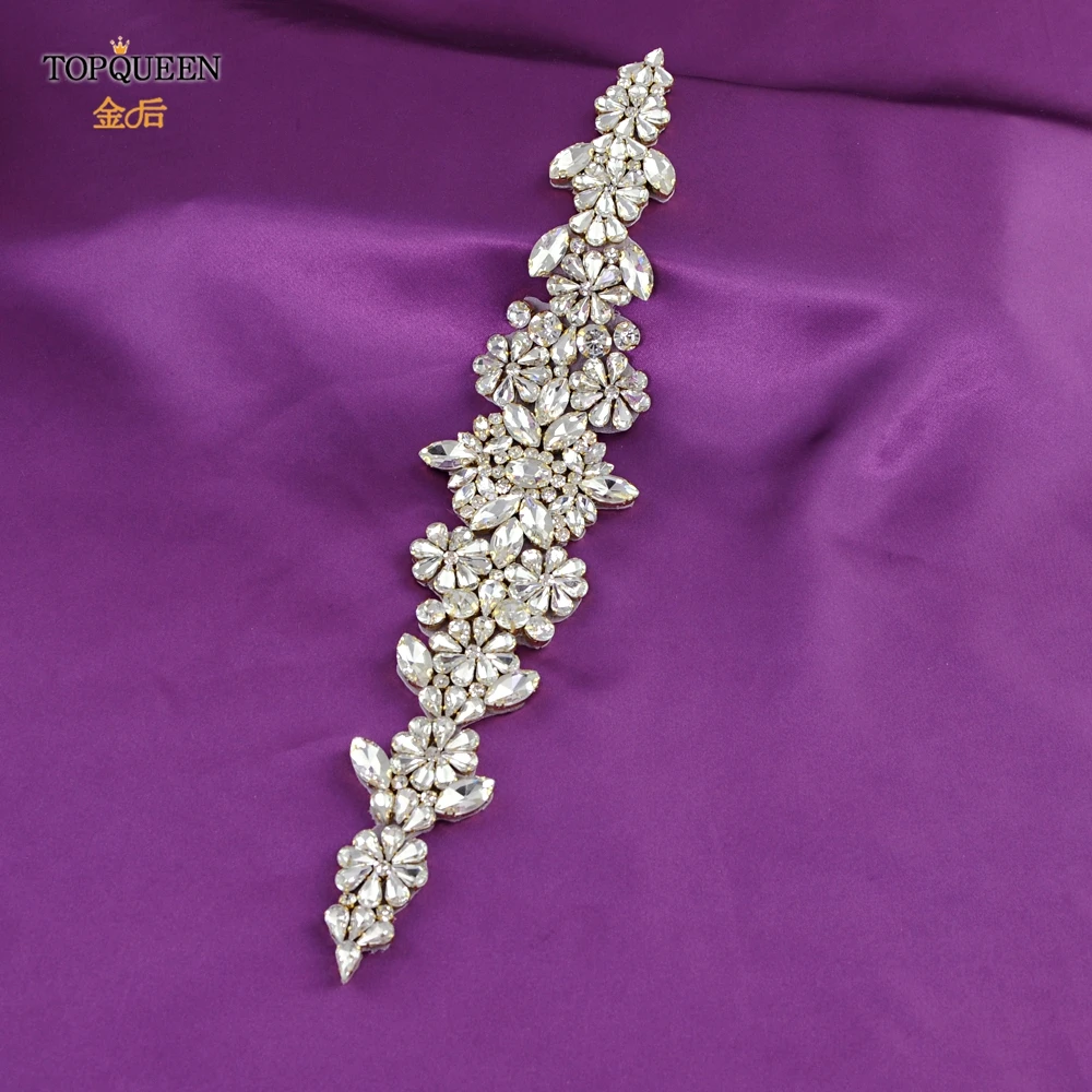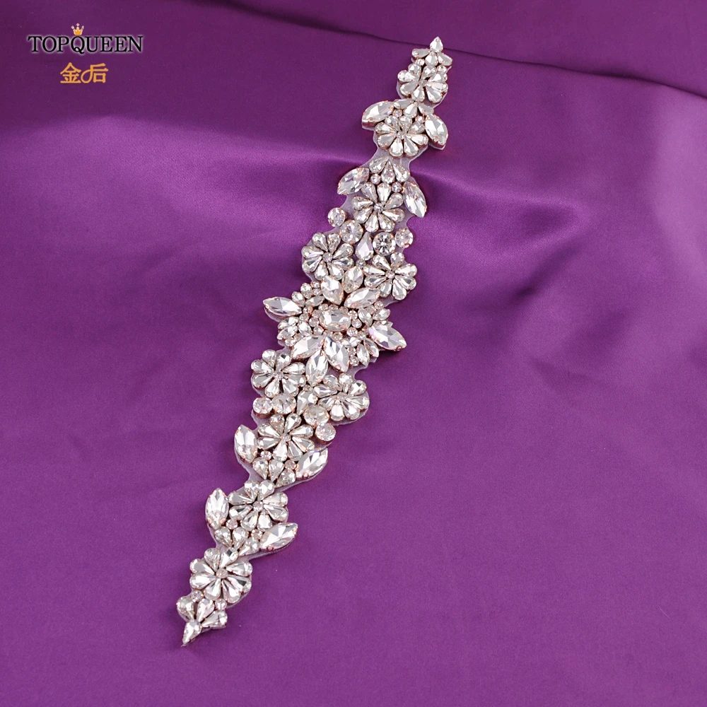 TOPQUEEN роскошный свадебный пояс с аппликацией из золотого розового золота со стразами, нашивка для невесты, головной убор, аксессуары для свадебного платья S325