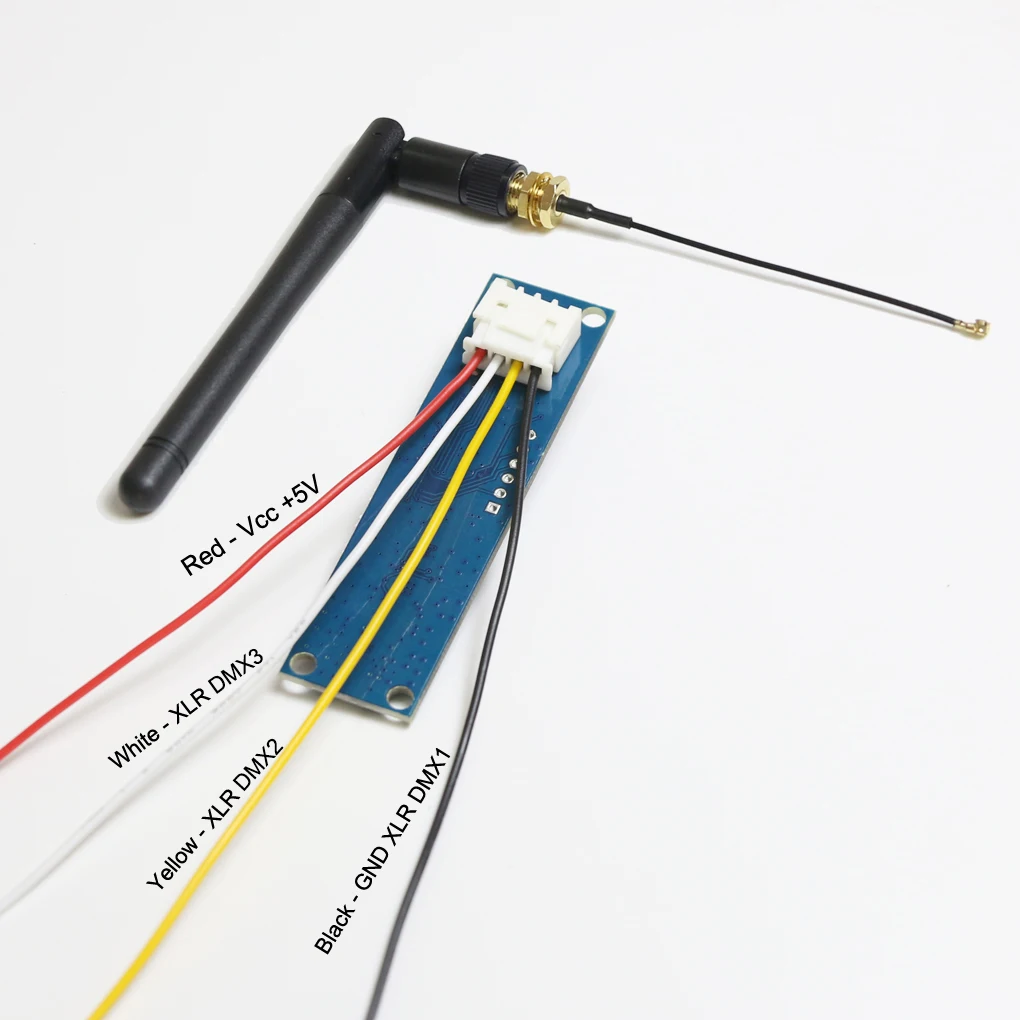 Красный --- Vcc + 5V Черный --- Gnd XLR DMX1 Желтый --- XLR DMX2 Белый --- XLR DMX3