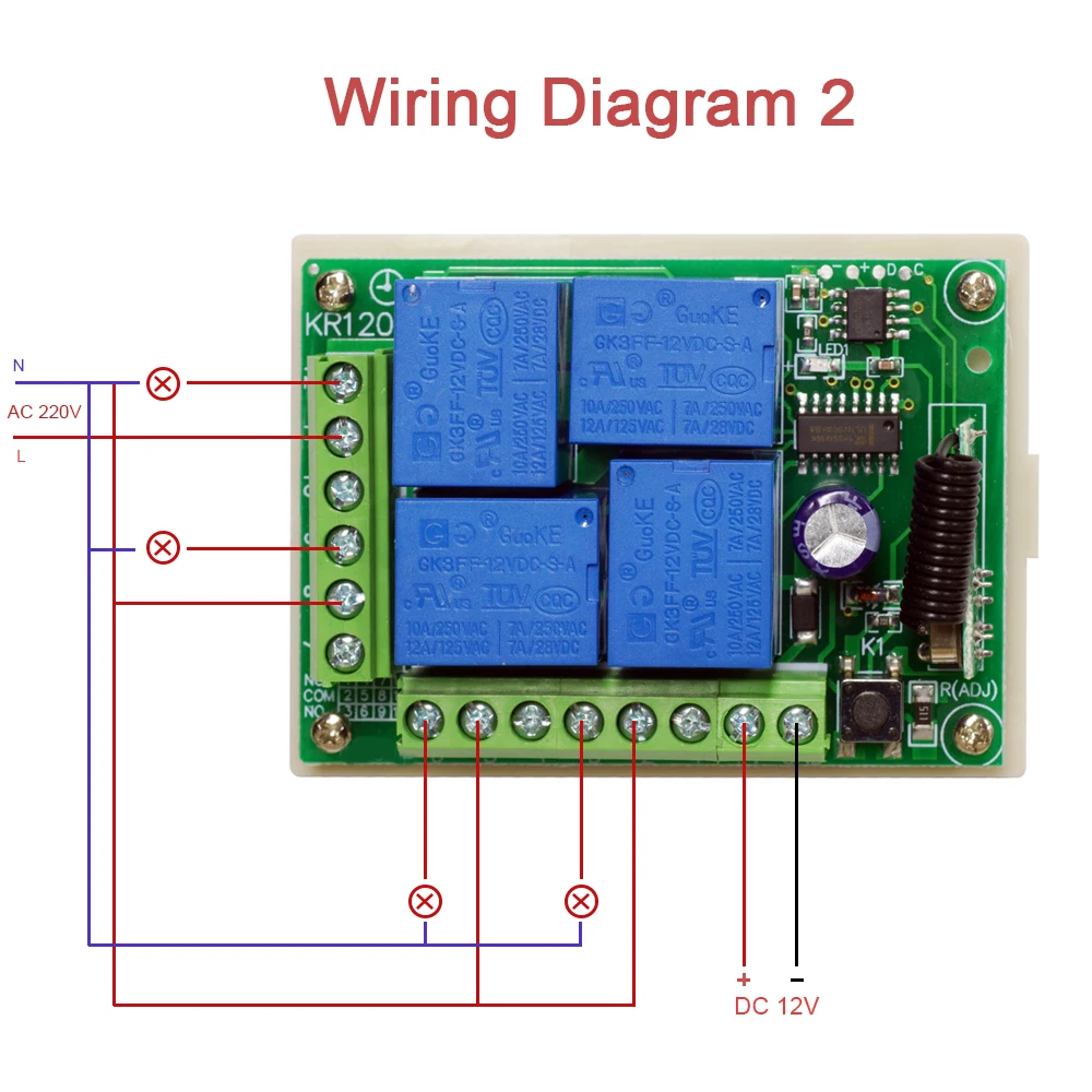 Когда светодиодный переключатель включен, нажмите любую кнопку на пульте дистанционного управления, светодиодный индикатор на приемнике будет мигать 3 раза и выключаться.