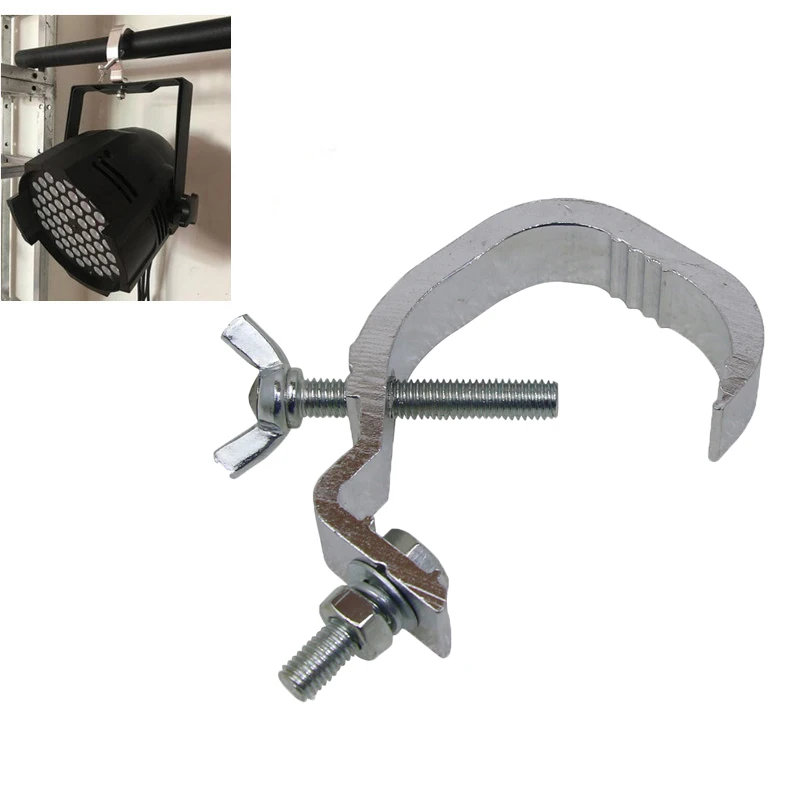 Прочный алюминиевый материал, сценический светильник, крюк, Зажимная вешалка Большая грузоподъемность: 20 кг Легко прикрепить, снять или переустановить свет Плотно обертывает ферму, надежно и стабильно Подходит для led par Светильник, led par can, дискотечный светильник, DJ светильник и т. Д. Диаметр подходящей трубы: 35-52 мм