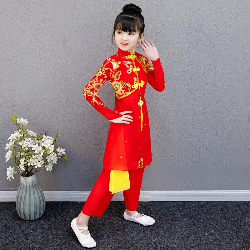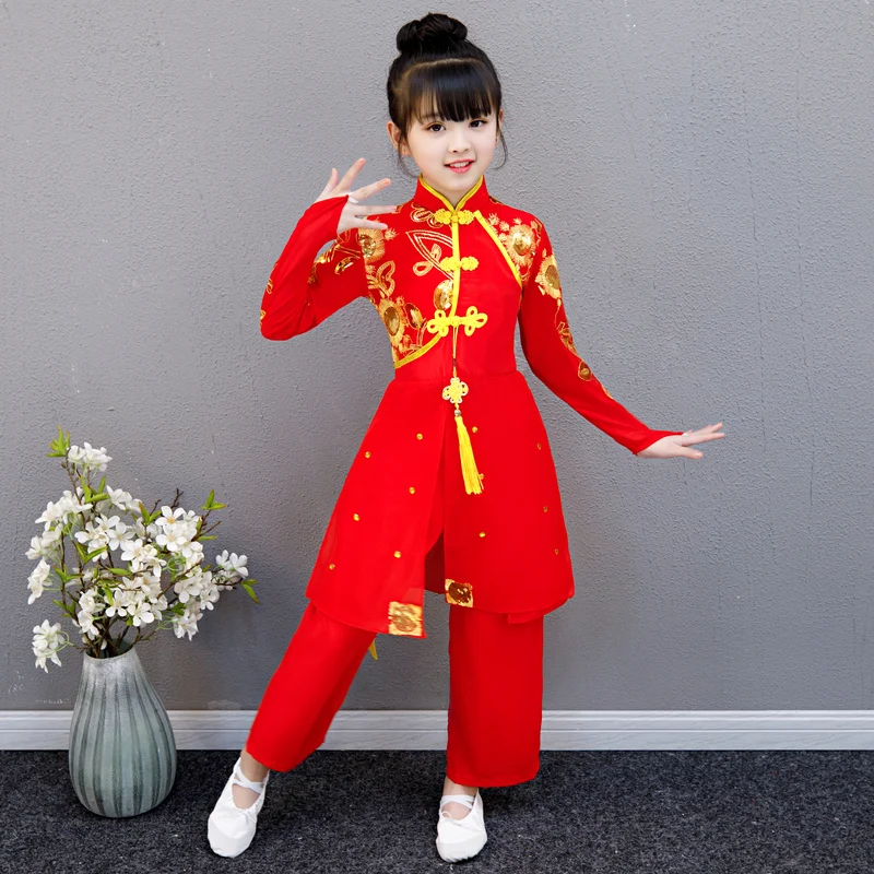 Детский классический танцевальный костюм для девочек, Национальный танцевальный Красный Элегантный зонтик Yangko, народный костюм для студентов, Одежда для танцев