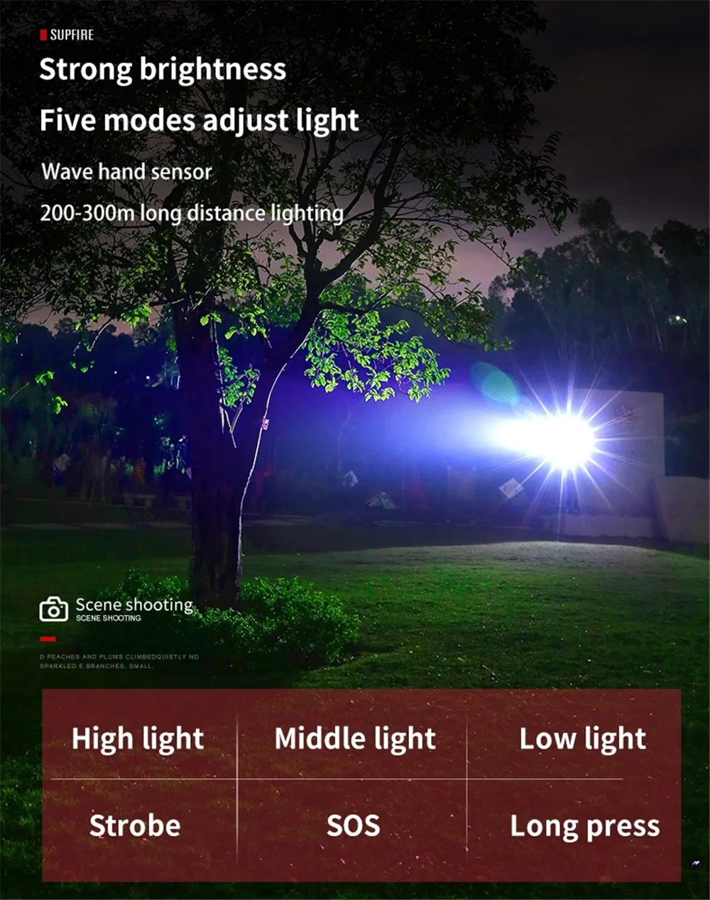 Из-за того, что светильник слишком сильный, пожалуйста, не блестите на глазах людей, в противном случае это может привести к повреждению глаз, особенно для детей.