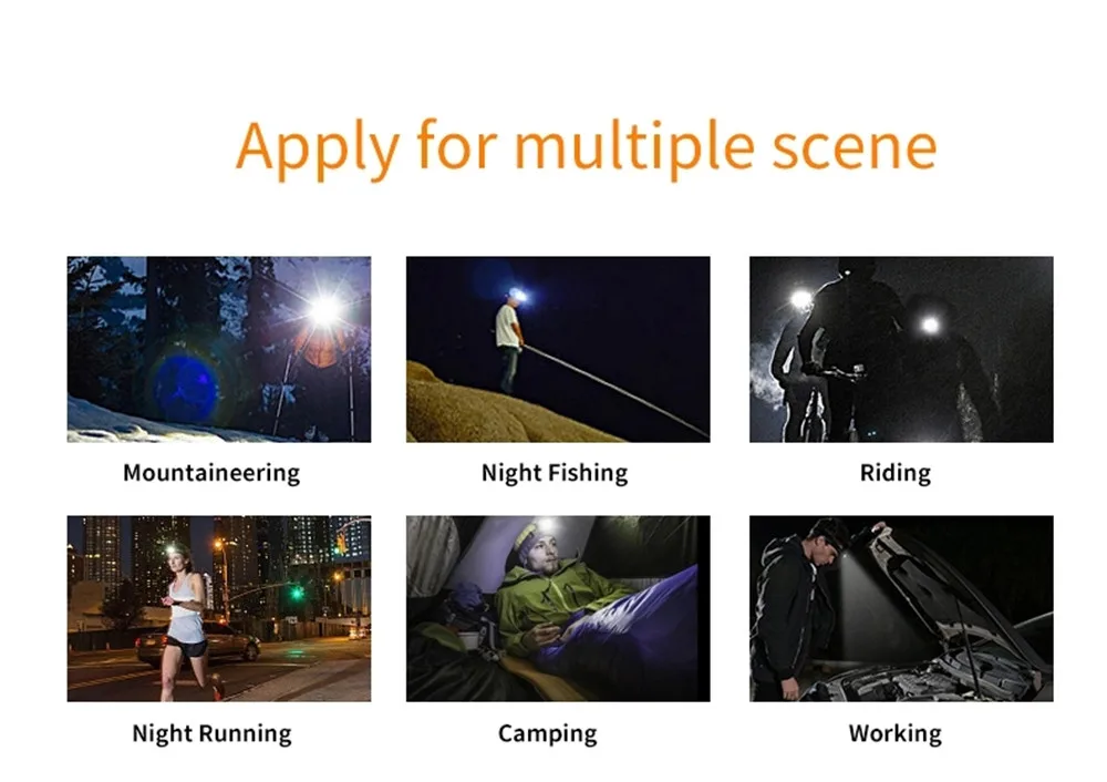 Материал: ABS + PC + TPR Цвет излучения: белый/красный Предупреждение о низком заряде батареи: Да Центральная яркая точка: Да Переключатель датчика: Да Память стойла: Да Светильник можно регулировать под углом: 0-60 градусов Батарея в комплекте: Да Требуемый Тип батареи: Встроенный литиевый аккумулятор Метод зарядки: USB зарядка Режимы работы: высокий-низкий-Стробоскоп + красный-красный стробоскоп + COB светильник Применение: Ежедневное освещение; Спорт на открытом воздухе, туризм, альпинизм, кемпинг, рыбалка, езда. Рабочий светильник.