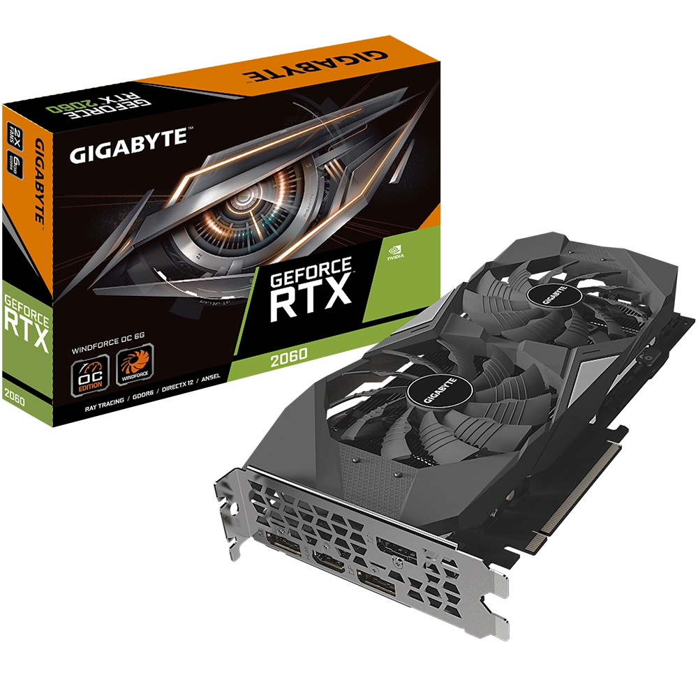 Basic characteristics Product SeriesGamingGPU manufacturerNvidiaGraphics processor Graphics processor (GPU)RTX 2060GPU code nameTu106Maximum resolution: Maximum resolution (horizontal)7680Maximum resolution (vertical)4320GPU frequency: GPU operating frequency (in boost mode)1680Frequency of the shader domain in boost mode1680Tech processA12Number of transistors in one GPU10800Maximum number of connected monitors4Number of Universal (streaming) processors1920Number of raster processorsA42Number of shader processors120Number of tensor processors240 sVersionary shader version6.1Geometric shader version6.1Pixel shader version6.1Maximum degree of aniraptic filtration16 boxMaximum degree FSAA32 boxVideo memory features Memory: Video memory6144Memory TypeGDDR6Effective frequency14000Memory bus discharge192 SInterface Video card interface: Number of linesPCI-E x16VersionPCI-Express 3.0I/O ports HDMI1HDMI version2.0bMaximum HDMI port resolution4096x2160DisplayPort3DisplayPort version1.4Maximum DisplayPort port resolution4096x2160Cooling Cooling typeActiveTechnology API support: API DirectX12.0API OpenGL4.5API OpenCL2.0NVIDIA CUDA7.5NVIDIA PhysXYeaNVIDIA 3D VisionYeaNvidia supplierYeaNvidia pure Video HDYeaHDCP 2.2 (4K)YeaMax. power consumption of the video core on the Noah. Frequency160Extra power connectors8pinMaximum video processor temperatureL88Built-in audio processorYeaLow profileIs noNumber of slots occupied2Video card length (PCB)265 SManufacturer recommended power BP500 sFeaturesTwo-fan cooling system. Protective panel on the back sideKind supplyRTLOther characteristics Description reference//www.gigabyte.com/ru/ graphics-card/gv-n2060wf2-6gd-rev-10/SP # spKit SupplyDisk with software, power adapter cable (option), instruction