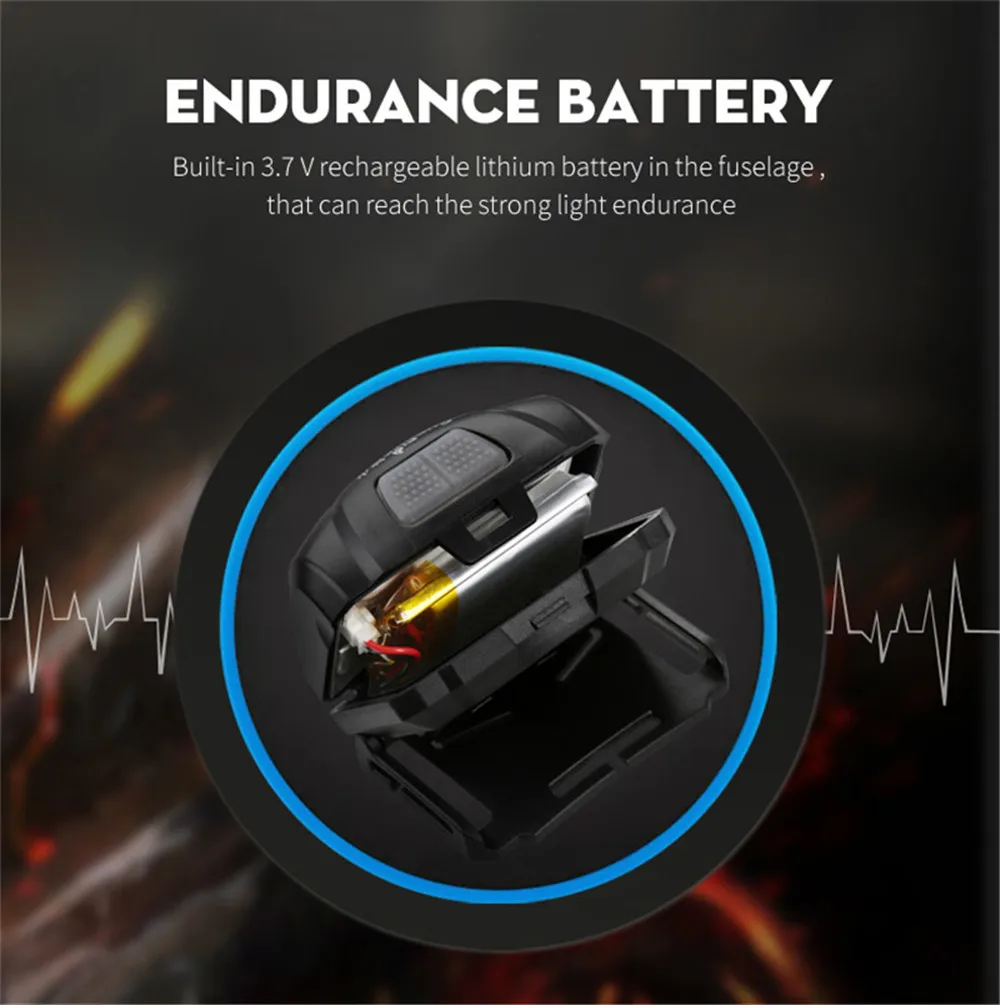 Нажмите обычный переключатель для включения или выключения Нажмите переключатель датчика для включения или выключения (синий светильник при использовании сенсорного выключателя) 1. Один щелчок для настройки одного режима. Циклы от High-Low-Strobe/Red-Red Strobe. 2. Нажмите 3 секунды, чтобы выбрать белый светильник или красный светильник. 3. Используйте usb-кабель для подзарядки фары. 4. При зарядке светильник красного цвета, это означает зарядку, светильник зеленого цвета, это означает полную зарядку.