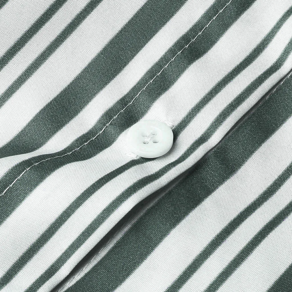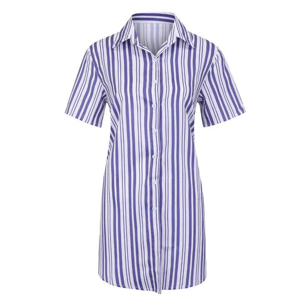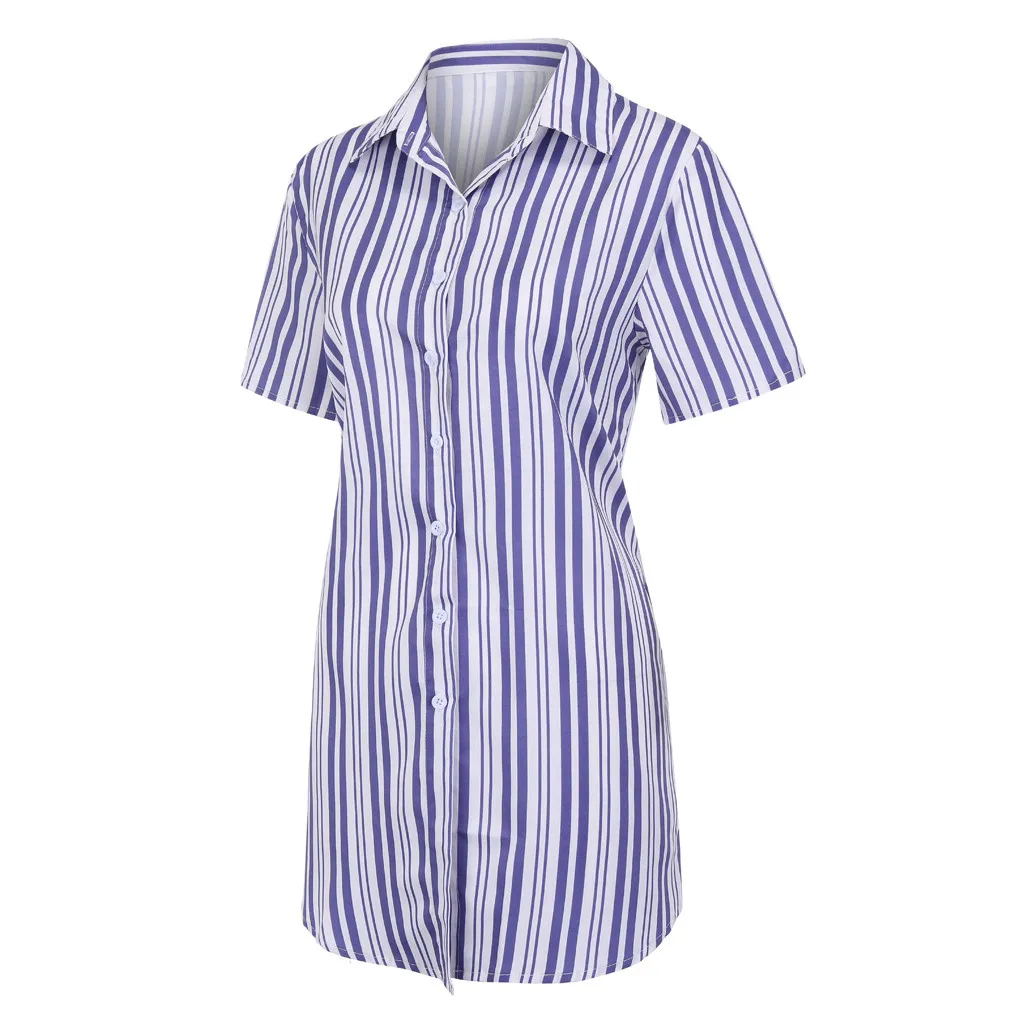 Fashion Women Lapel Stripe Printing Short Sleeve Easy Sandy Beach Mini Dress