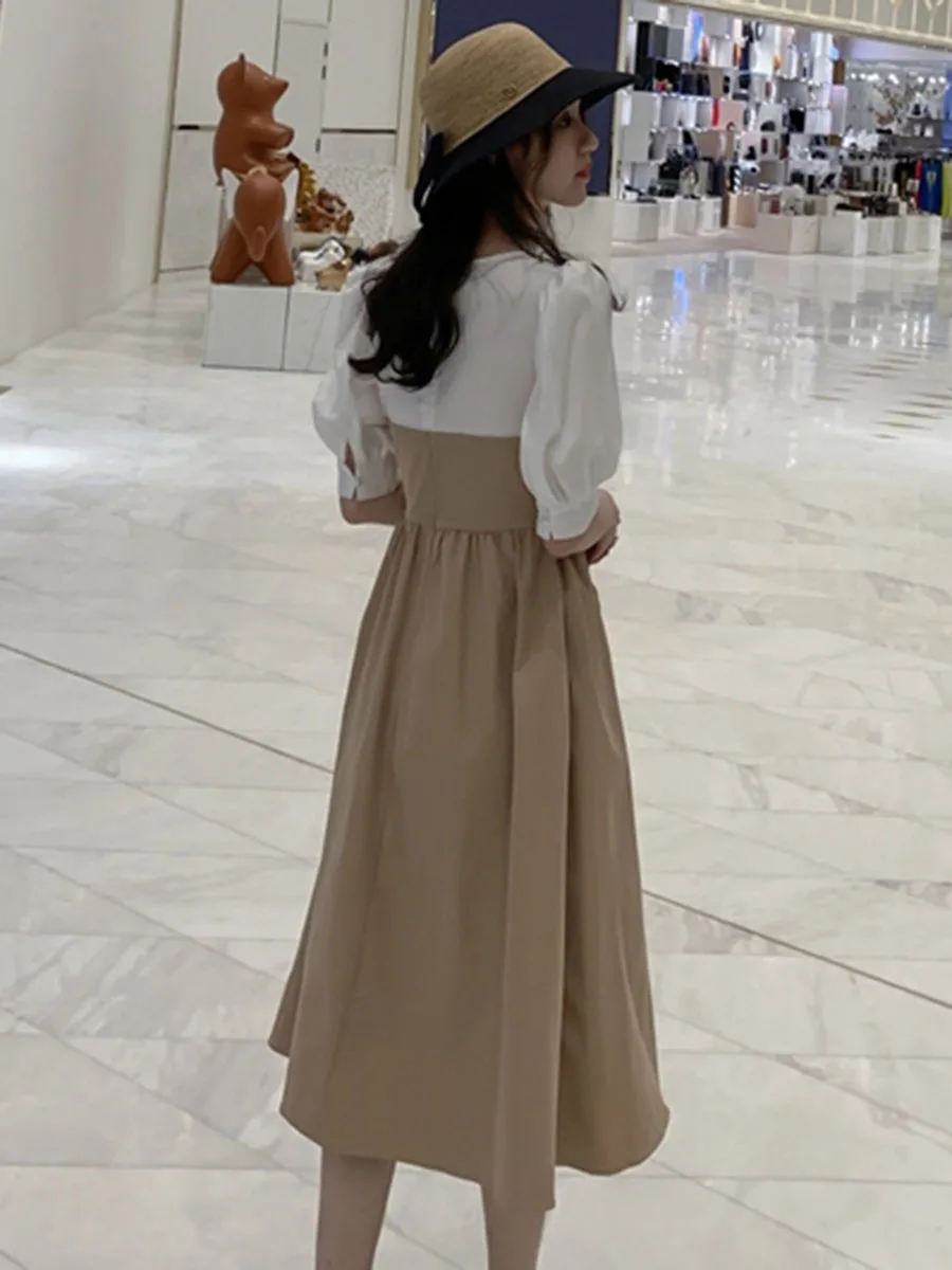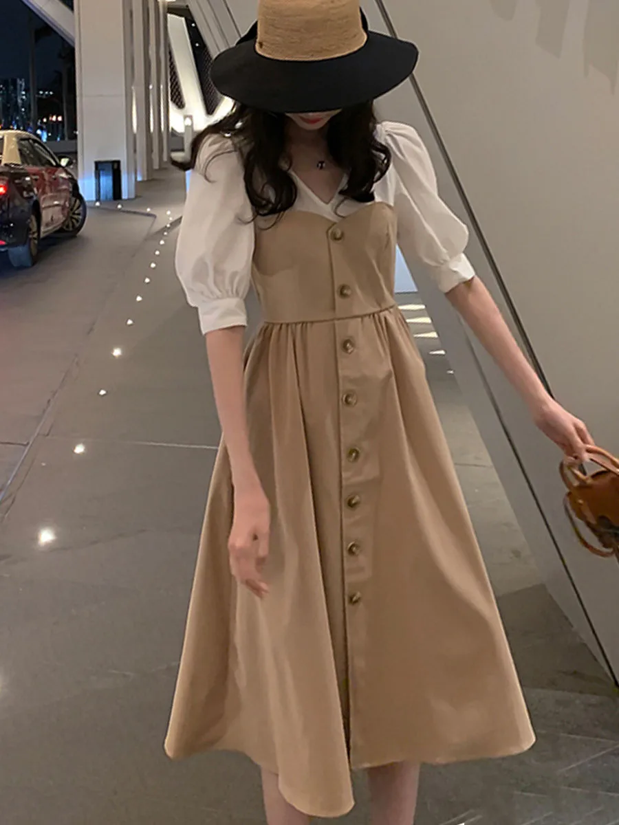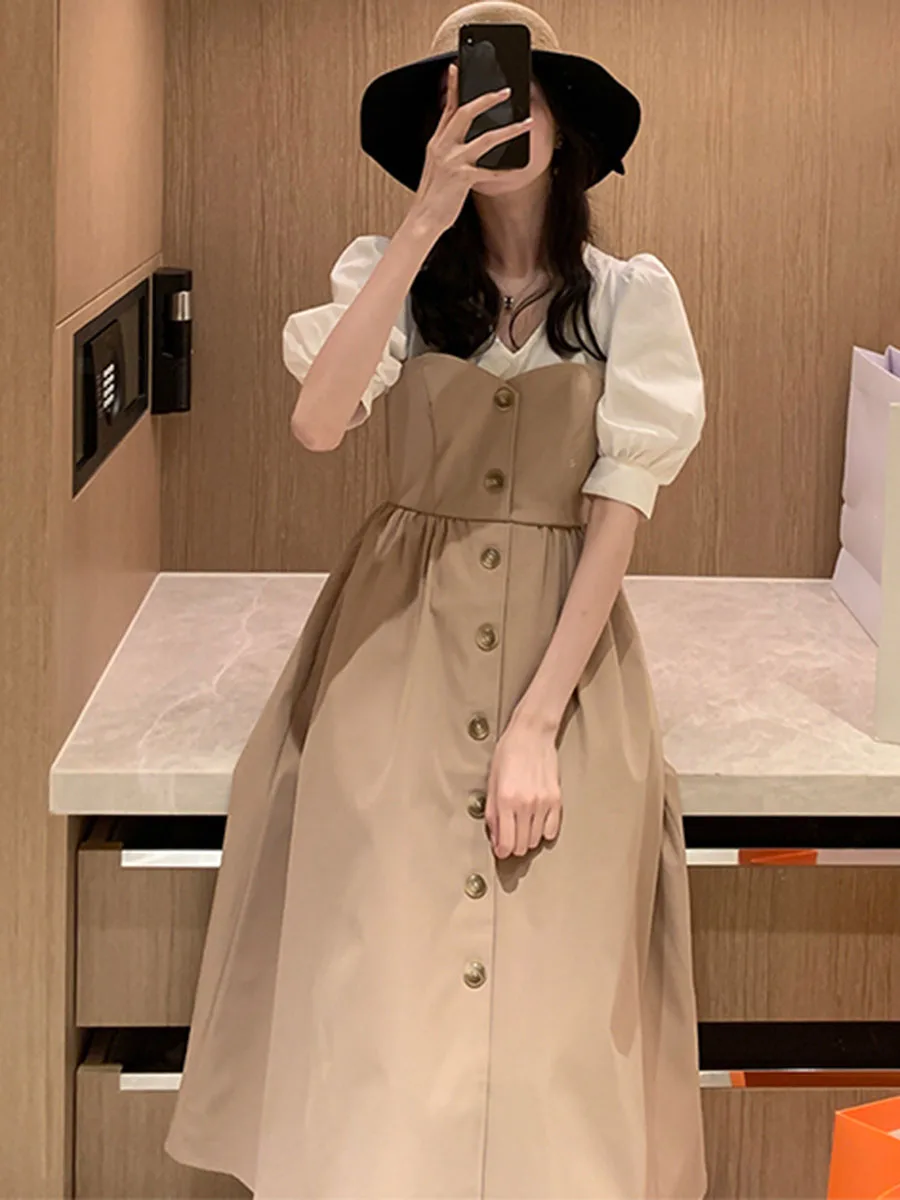 Летнее повседневное сексуальное элегантное корейское офисное женское винтажное платье миди черное белое свободное однотонное женское платье с высокой талией 2020