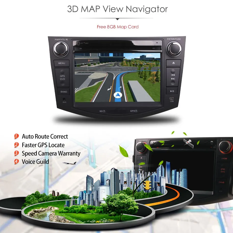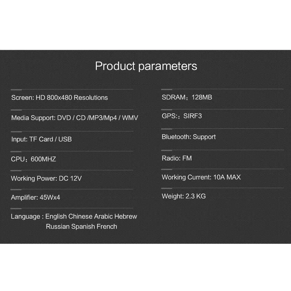 Все в одном, мультимедийная система 7 дюймов сенсорный экран HD Bult GPS навигатор (16 Гб карта входит в комплект) поставляется с hd-камерой заднего вида видео/в регионе поддержки, бесплатным dvd-плеером, bluetooth-подключением для более безопасного вызова на дороге, управление рулевым колесом, поддержка идеального обновления для вашего автомобиля, Чистый гладкий дизайн идеально подходит вашему автомобилю воспроизводит все популярные типы дисков и цифровых мультимедийных файлов (вход USB / Micro SD)