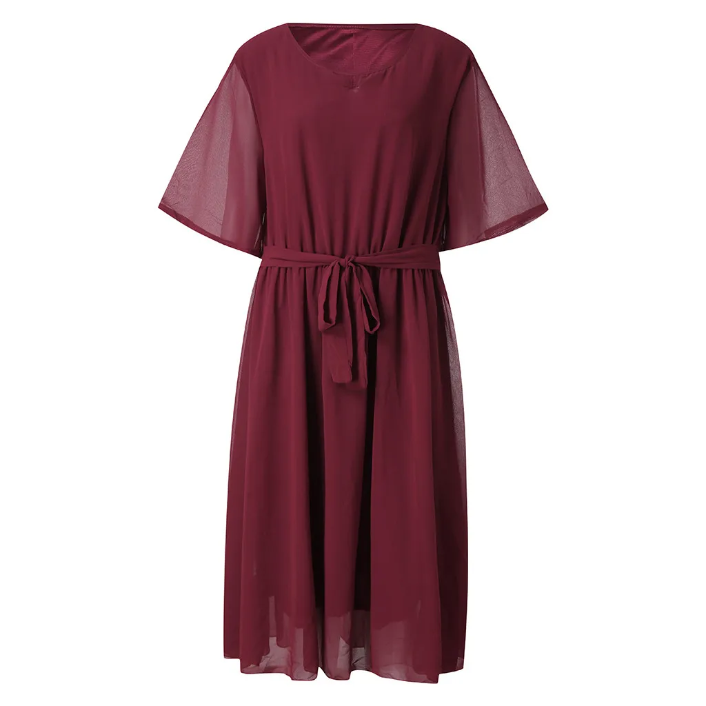 Женское платье большого размера, Повседневное платье с круглым вырезом и рукавом до колена, вечернее платье