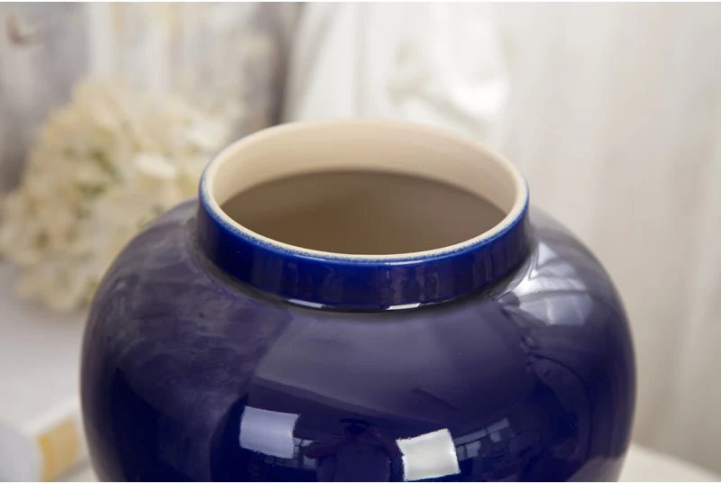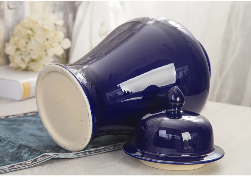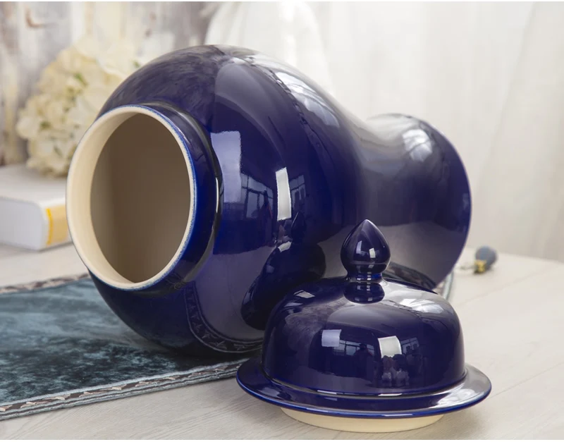Большая напольная ваза, 60 см, одноцветная, синяя, азиатские дужки, ваза с крышкой, 23 дюйма, керамическая банка, декоративная для дома