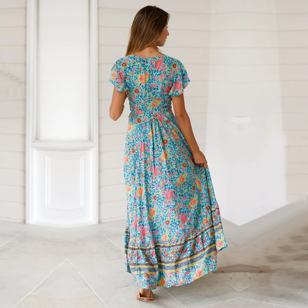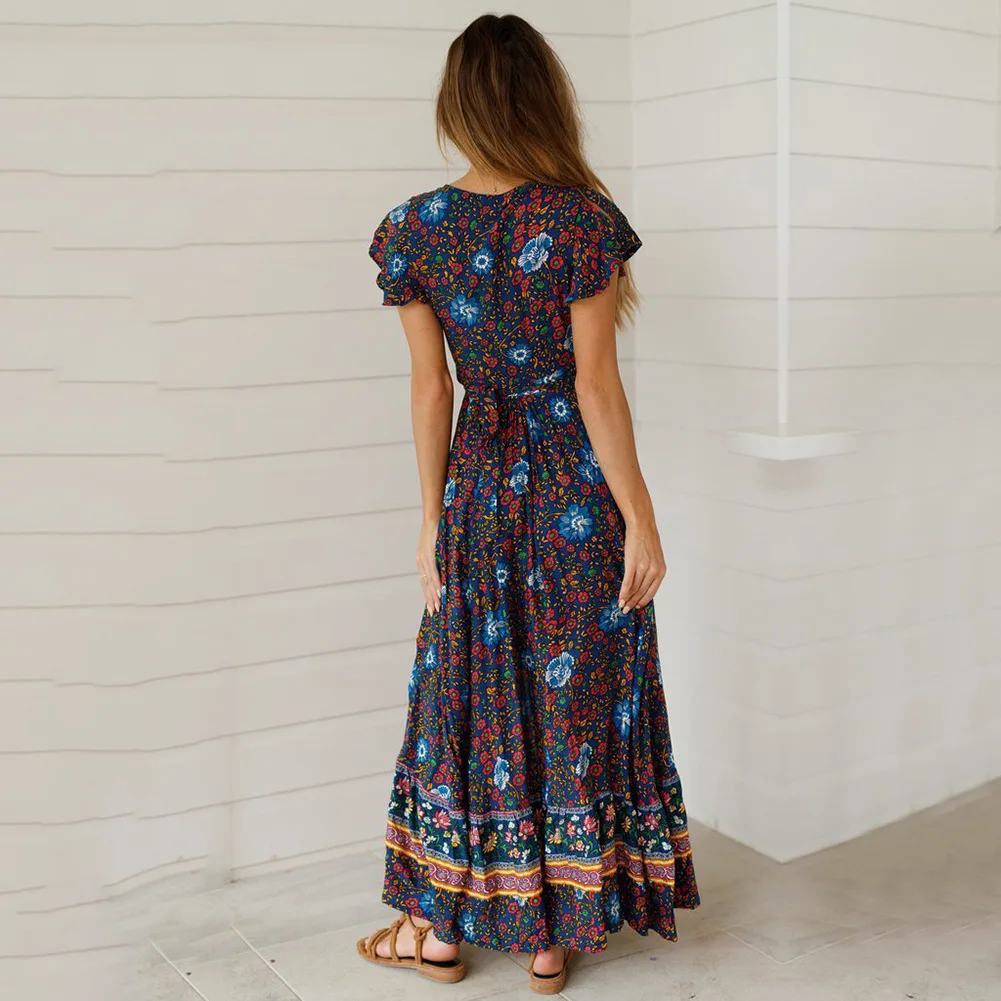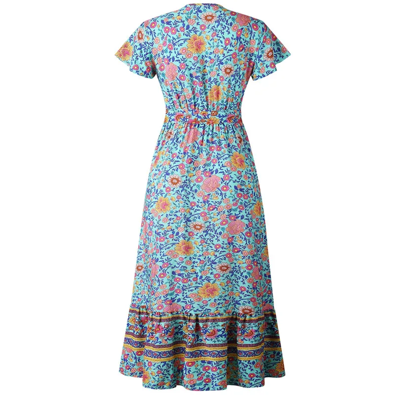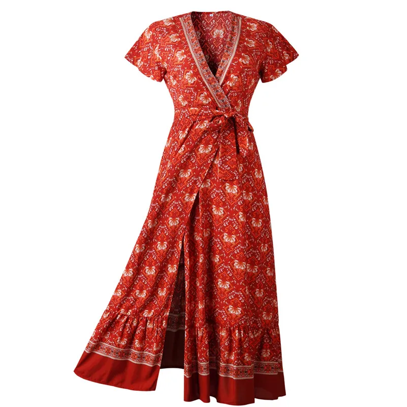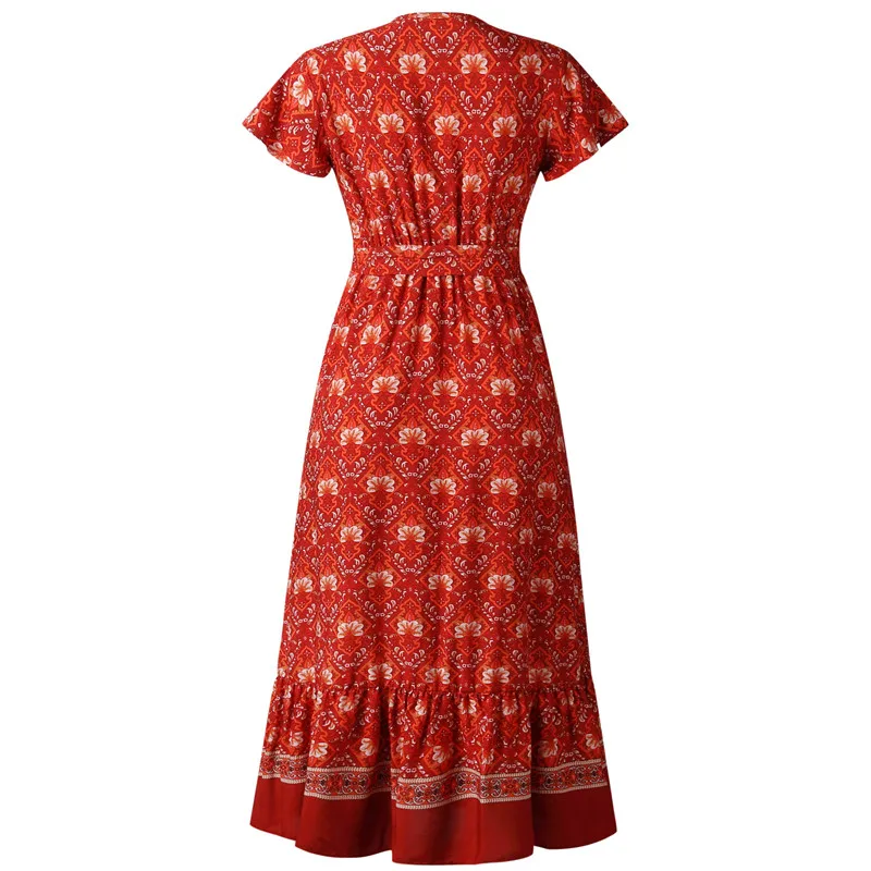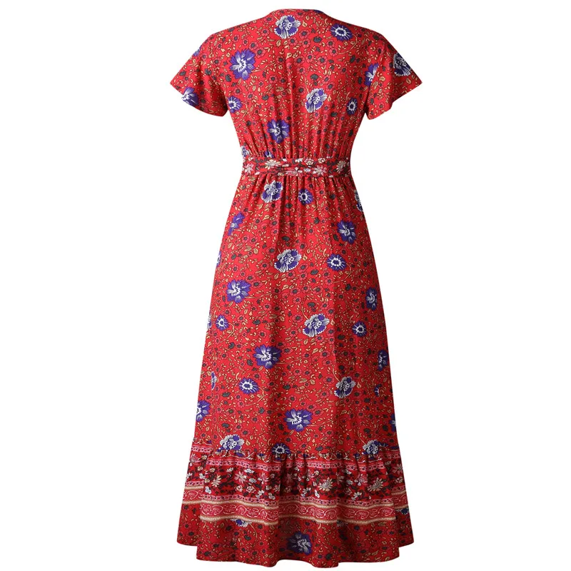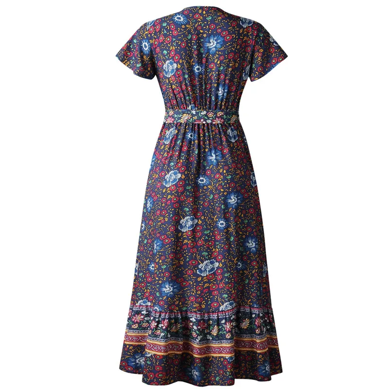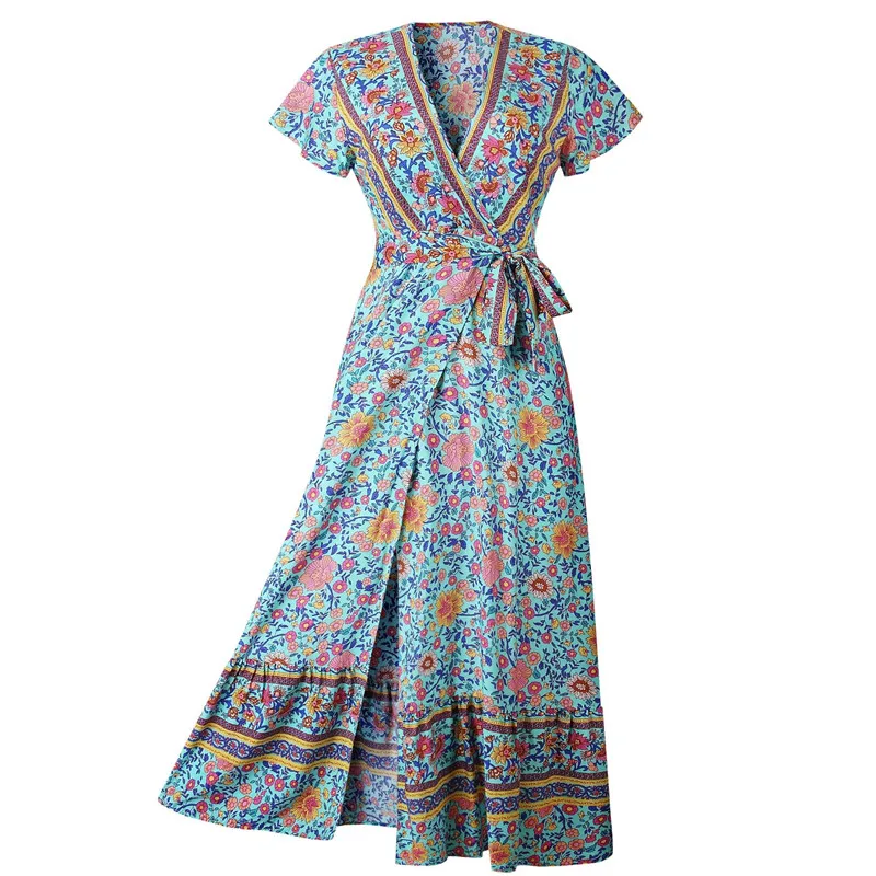 Материал: хлопок/Размер: SML XL/узор: цвет/воротник: v-образный вырез/талия: эластичная резинка на талии/Классификация цветов: красный, белый, светло-зеленый, темно-синий Дата/Тип юбки: юбка принцессы/Сезон: лето/длина рукава: короткий рукав/Длина юбки: длинная юбка/Профиль: A Тип.
