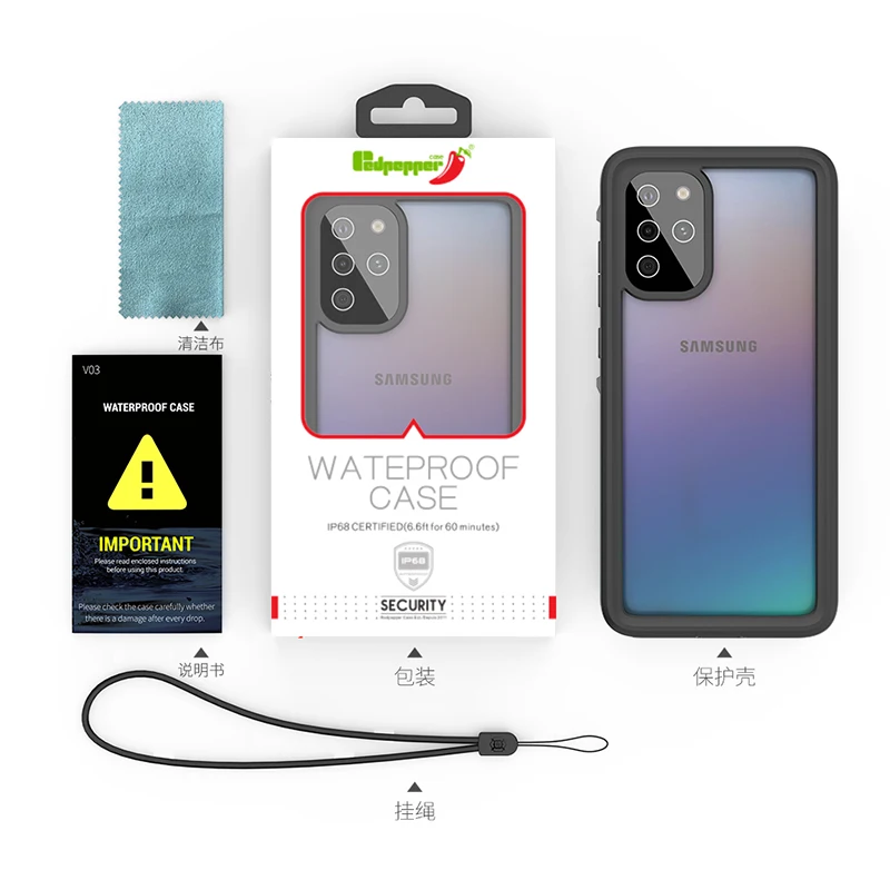 IP68 Water Proof Case For Samsung S20 Ultra S20 Plus Real Waterproof Case Full Protect Cover Phone Case For Samsung Galaxy S20 Feature Anti-Frost, Anti-Dust, Sand-proof, Waterproof, Screen-touchable Multi-function, perfect when going surfing, fishing, skiing, swimming, climbing, drifting Waterproof, Qualified for IP-68 Qualified. Protect your phone from damaging by water splashes and sand getting in cracks and crevices Allows you to access all functions of your phone .