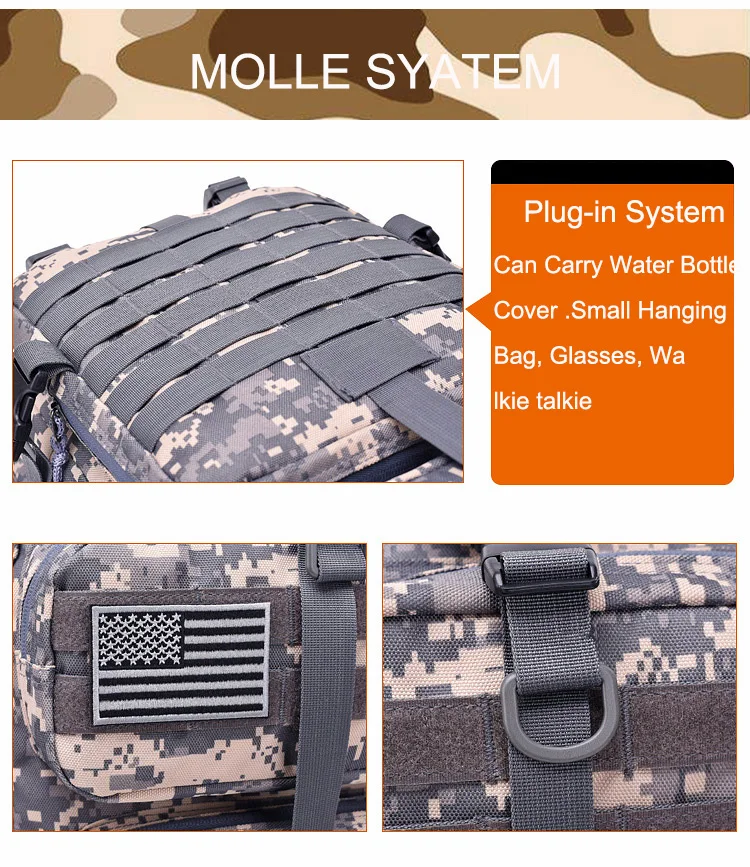 Черный тактический рюкзак 45L Molle 900D военный рюкзак для активного отдыха на открытом воздухе 3P EDC CS Pack охотничий треккинг рюкзак дождевик Характеристики: Материал: ткань Оксфорд 900D Вместимость: рюкзак 45 л Цвет: ACU цвет/черный/Камуфляж джунглей/хаки/CP камуфляж Размер (всего): 49 см * 29 см * 28 см Вес: 1,2 кг Посылка Вес: 1,23 кг Посылка: 1 * Уличный тактический рюкзак Примечания: 1. Возможны незначительные отклонения в размере на 1-2 см (0,4-0,8 за возможной погрешности ввиду того, что Замеры производились вручную, спасибо. 2. Цвет товара, отображаемый на фотографиях, может немного отличаться на мониторе вашего компьютера, так как мониторы не откалиброваны так же. 3. Ёмкость составляет около 45L, пожалуйста, примите во внимание Допустимое отклонение в 1-2 см (0,4-0,8 за возможной погрешности ввиду того, что Замеры производились вручную, спасибо. 4. Просто поместите флаг страны, не будет выслан