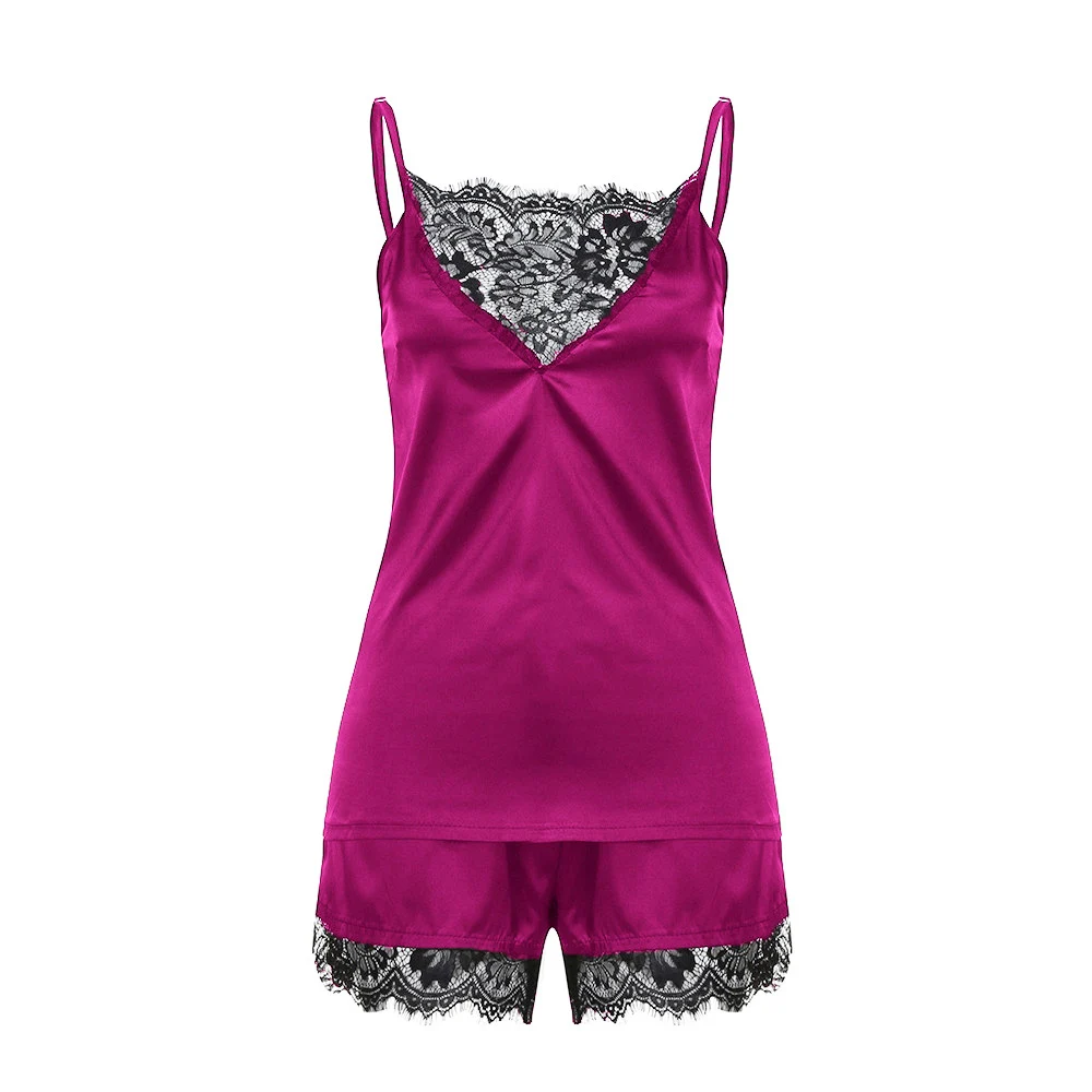 Женский пижамный комплект Meihuida, ночная рубашка, жилетка без рукавов для девушек, топ + шорты, пижама, атласная шелковая кружевная одежда для сна