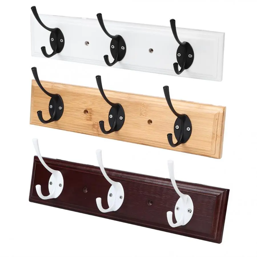 Solid Wall Mount Hat Rack 3 Hook Rail Coat Storage Hanger Towel Clothes Rack Organizer for Home Entryway