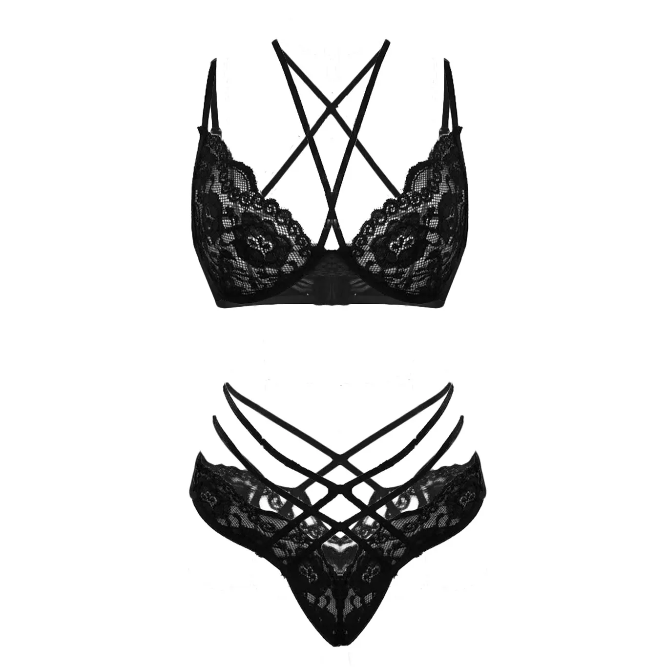 1.На размеры для нижнего бельяВеерообразная форма Кружево, эластичная цепочка, трусики-стринги, бюстгальтер беспроводной
