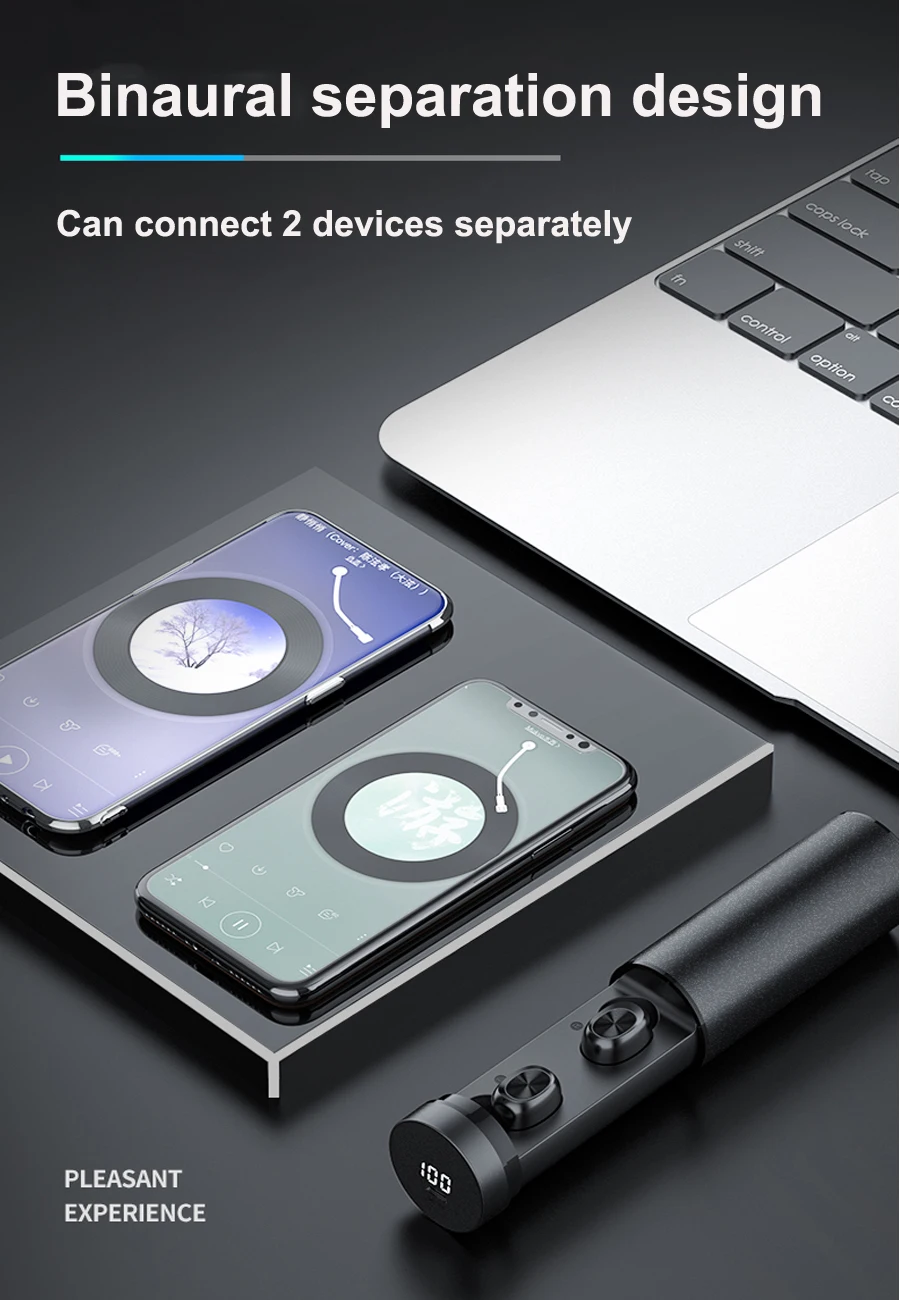 ●Product Название: B9-TWS ●Charger коробка Батарея: 300 мА-ч ●Earphone Батарея: 50 мАч * 2 ●Bluetooth версия: второе поколение Bluetooth 5,0 ●Music/продолжительность звонка: 4-6 часов ● Водонепроницаемый: IPX7 жизнь Водонепроницаемый ●Charging коробка можно заряжать портативным зарядным устройством гарнитуры: 6-7 раз ●Charging емкость ящика: 300 мА/ч, литий-полимерный аккумулятор ●Headphone одного уха Емкость: 50 мА/ч, литий-полимерный аккумулятор ●Sensitivity: 109dB ●Impedance: 32Ω ●Bluetooth Расстояние передачи: около 10 м
