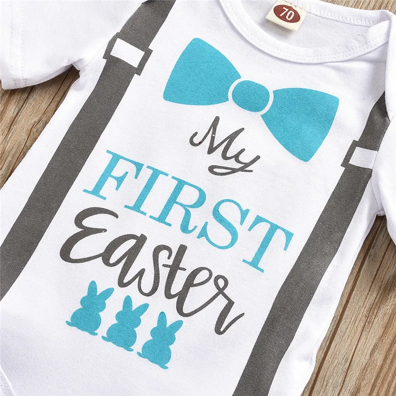 Одежда для новорожденных девочек Комбинезон с короткими рукавами и надписью для маленьких девочек и мальчиков, гетры, пасхальный наряд с изображением кролика, комплект для малышей, Прямая поставка
